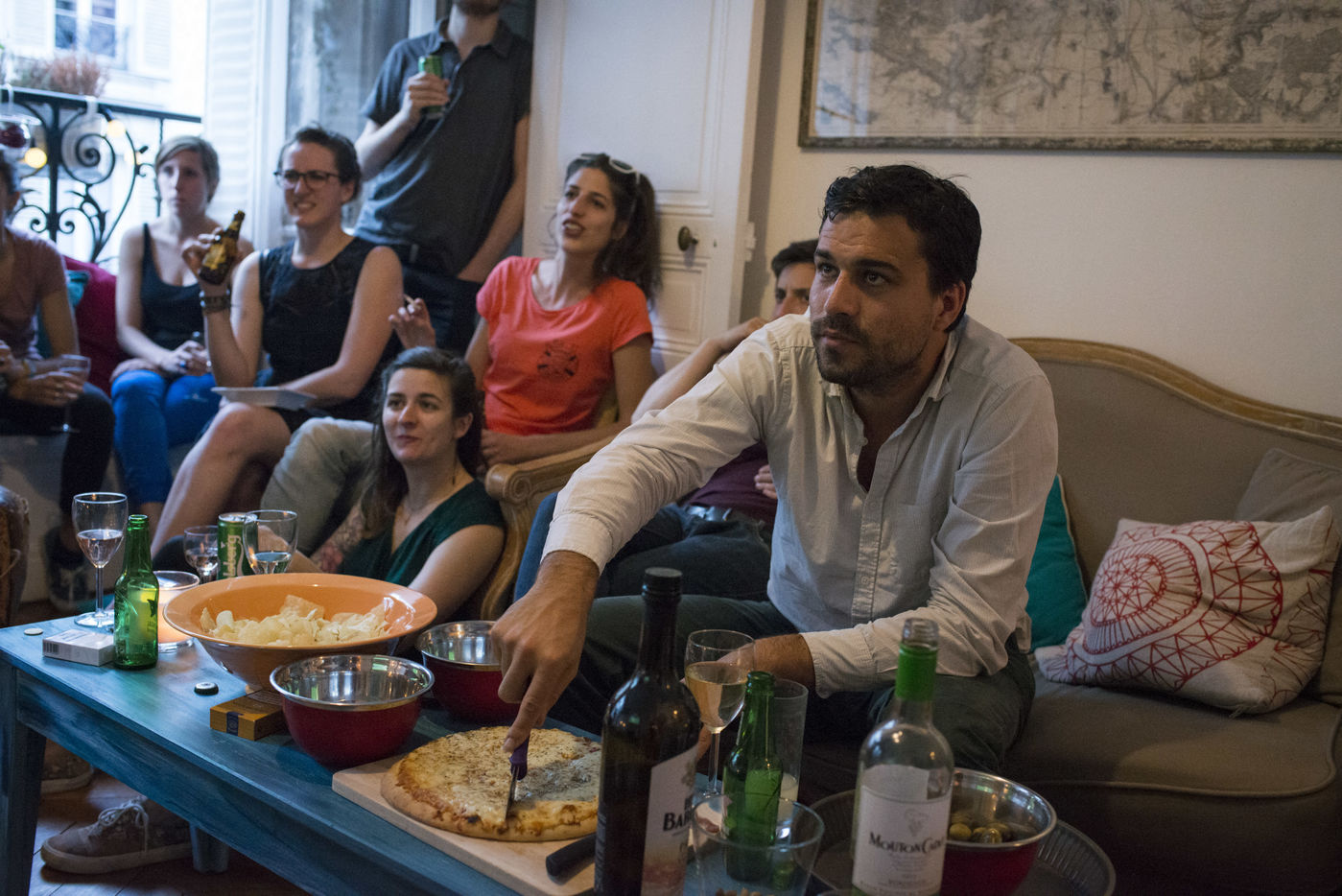 Demi-finale de l'Euro 2016 entre amis, dans un appartement parisien. La France s'imposera 2-0 face à l'Allemagne.