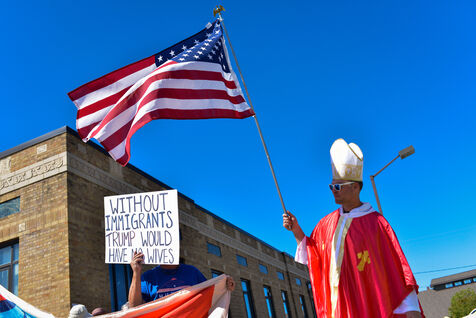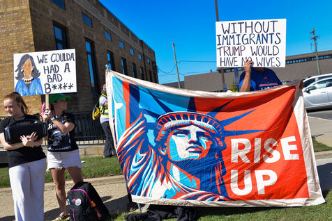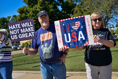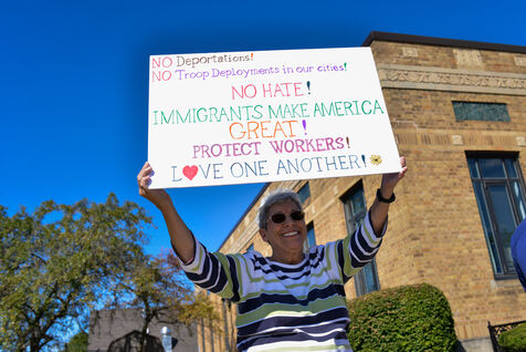 USA, South Haven, Illinois, 2025-08-30. Several american citizens gathered in front of the South Haven post office to protestDonald Trimp's policies, particularly his choices and actions regarding immigration. It was a peaceful and motionless demonstration in this seaside town on the shores of Lake Michigan. Many cars honked as they passed, showing their support for the demonstrators.