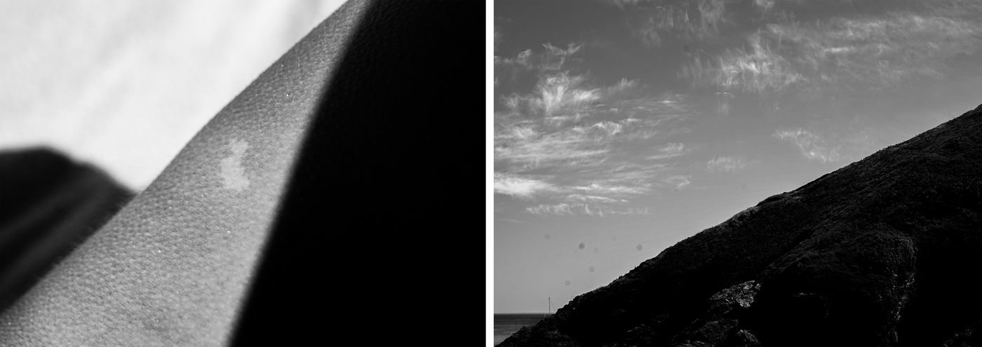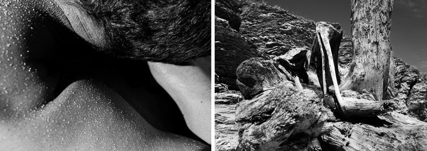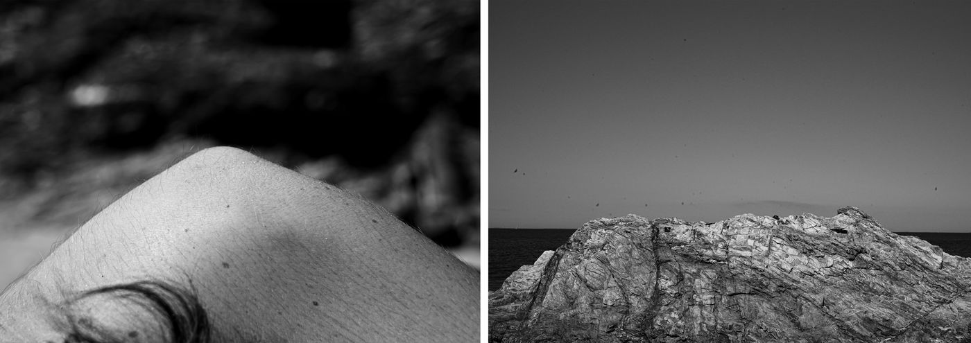 Diptyques photographiques visant à faire dialoguer formes, textures, reliefs du corps humain et du paysage de la mer. Travail de recherche sur la mémoire du corps et celle du temps qui passe, qui s'inscrit éternellement dans le paysage.