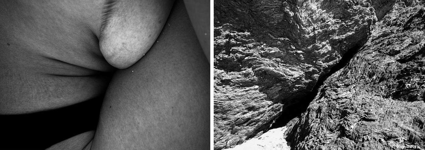 Photographic diptychs aiming at making dialogue between forms, textures, reliefs of the human body and the landscape of the sea. Research work on the memory of the body and that of the passing time, which is eternally inscribed in the landscape.