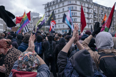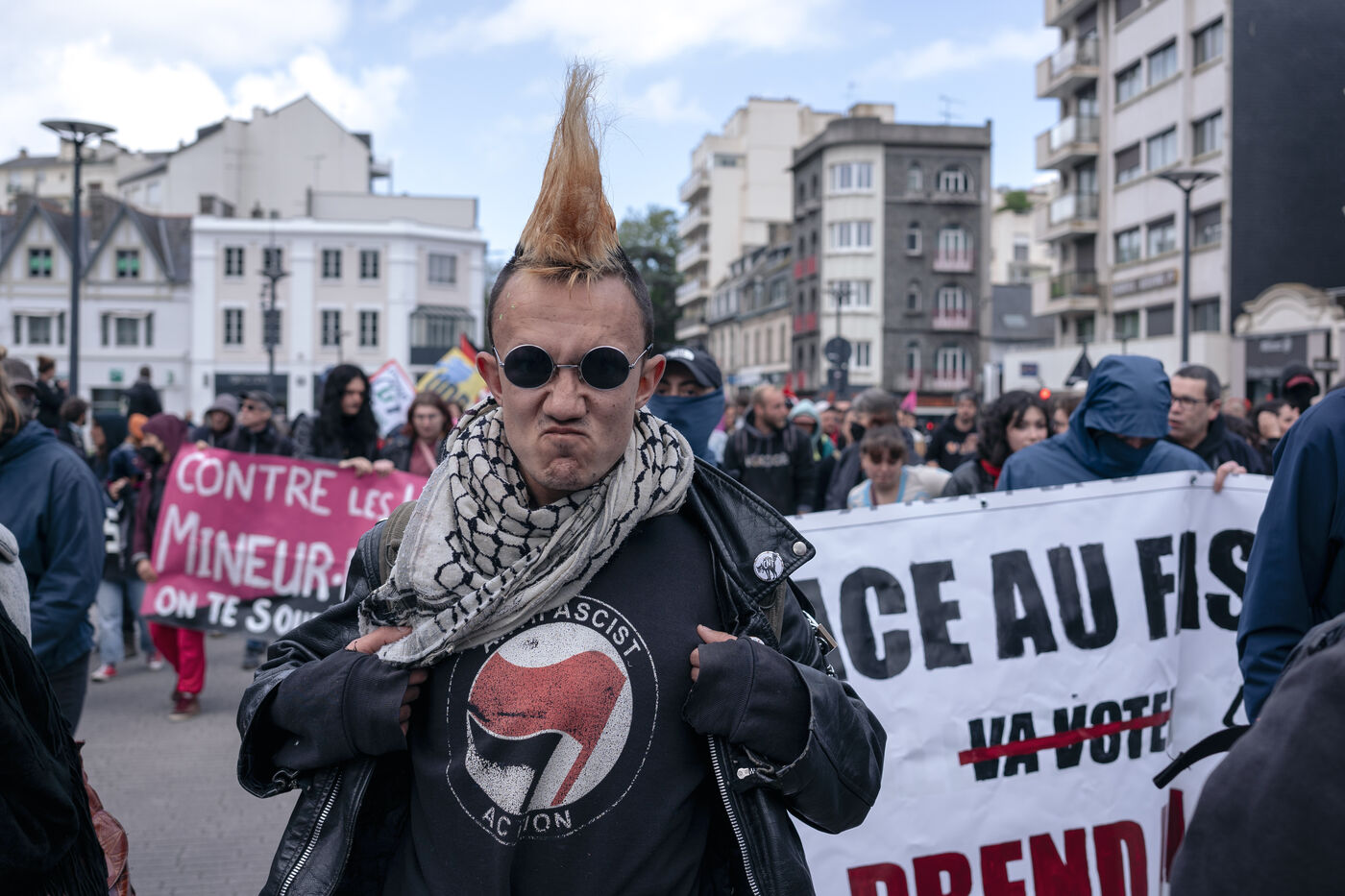 Regional demonstration in Saint-Bireuc (Côtes-d'Armor) against the far right. On April 21, 2024, 22 years after Jean-Marie Le Pen reached the second round of the presidential elections, over 80 associations, collectives, trade unions and political parties called on people to take to the streets to fight fascism.