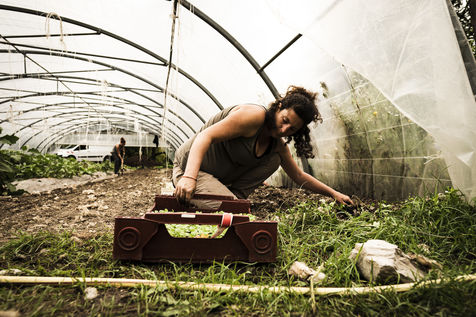 Elodie, en reconversion professionnelle a rejoint Audrey cet été. Toutes deux partagent la même vision : travailler la terre avec ce qu'elle offre, dans le respect de la nature.