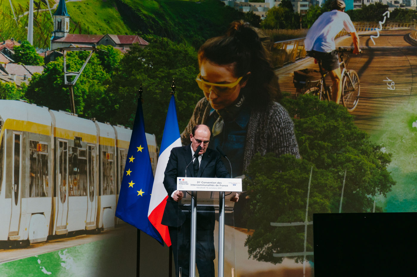 French Prime Minister Jean Castex visited the 31st national convention of the AdCF this morning, October 15. He gave a speech and spoke with the mayor of Clermont-Ferrand, Olivier Bianchi.