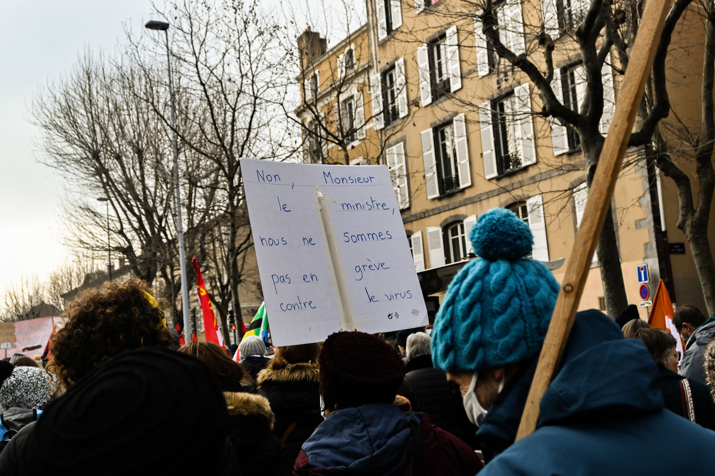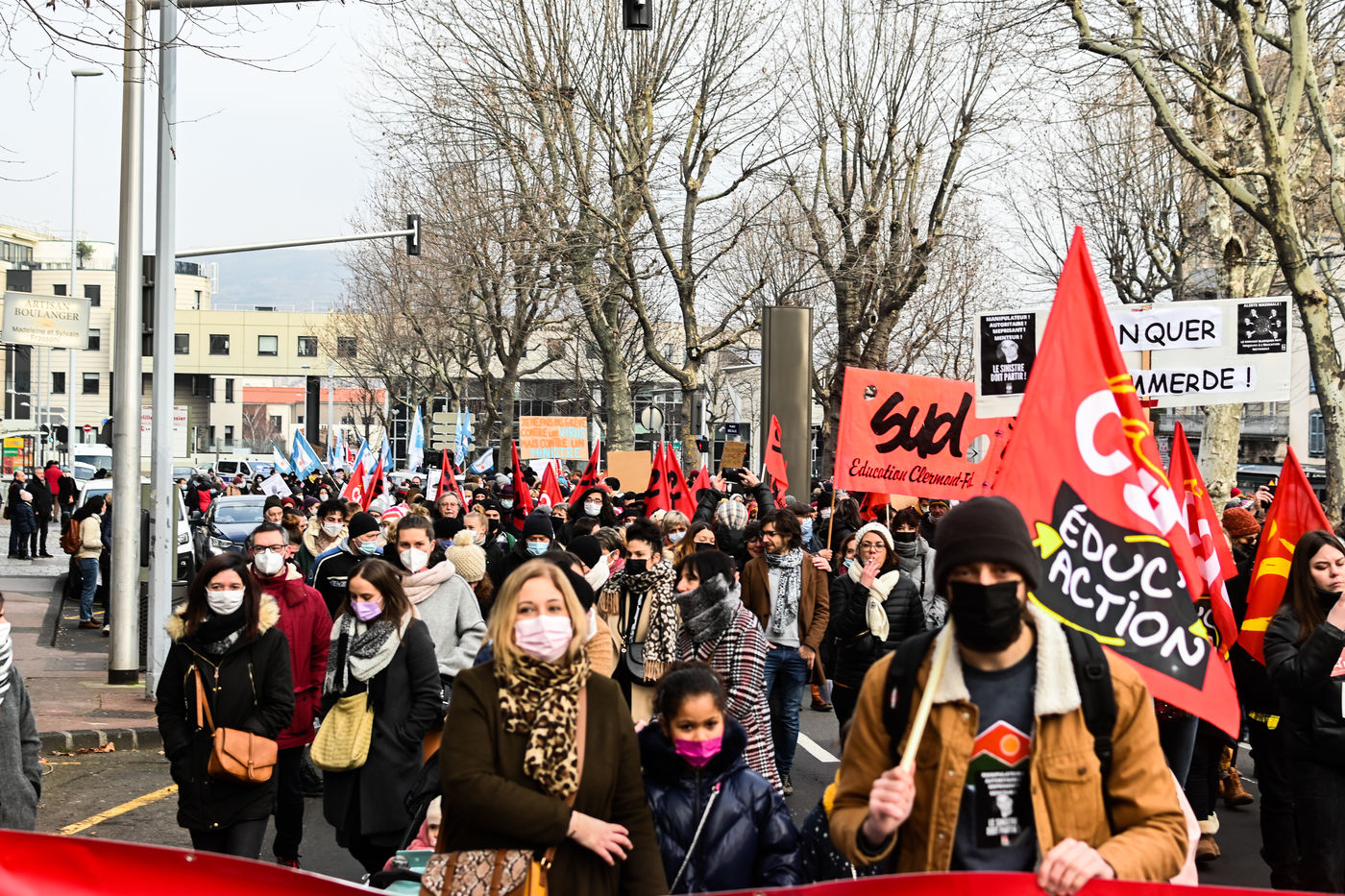 Alors que ce jeudi 13 janvier le pays fait face à une grève massive à l'école, plusieurs manifestations, à l'appel de syndicats, ont lieu dans le pays. Ici, à Clermont-Ferrand, où un millier de personnes ont protesté.