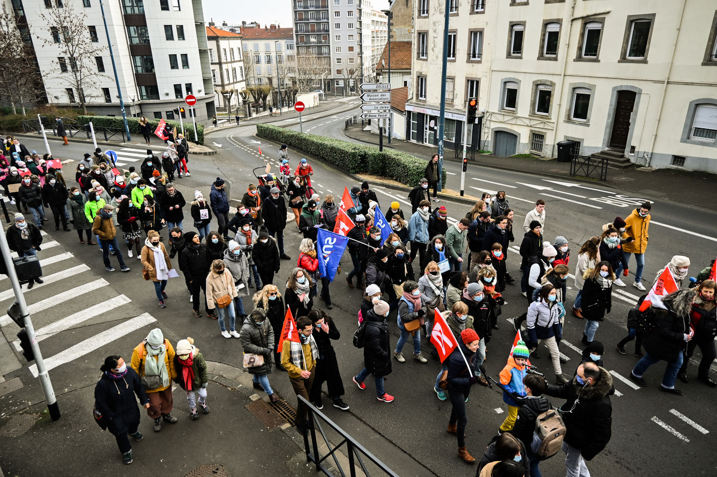 Grève à l'école - manifestation des syndicats enseignants et étudiants à Clermont-Ferrand
