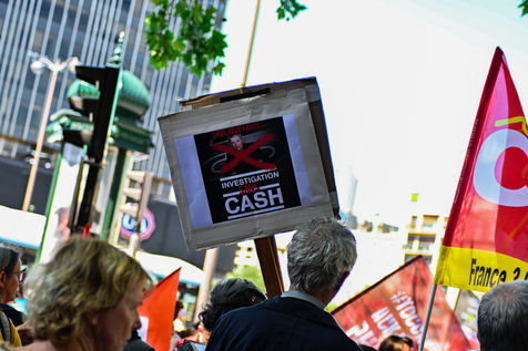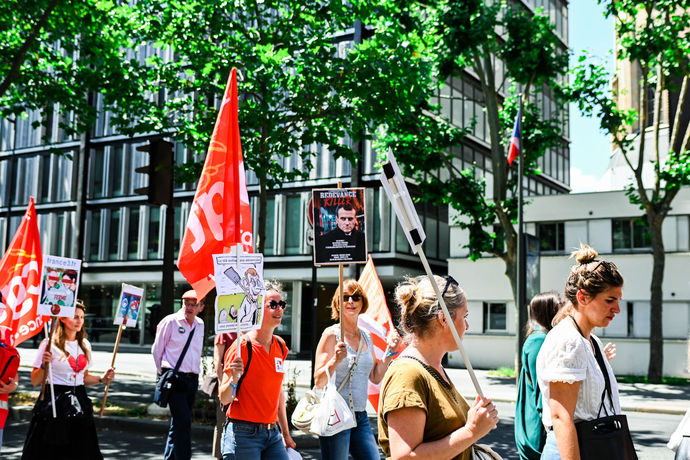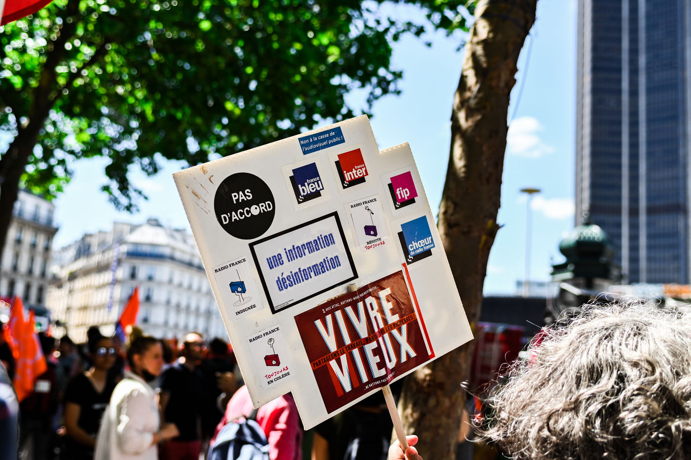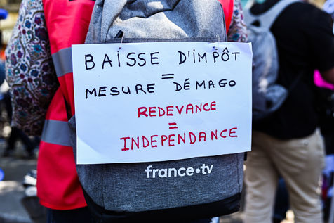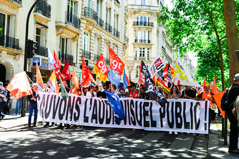 Strike and demonstration of the employees of Radio France and France Televisions against the end of the audiovisual license fee. The programs on the radio and TV were therefore disturbed.