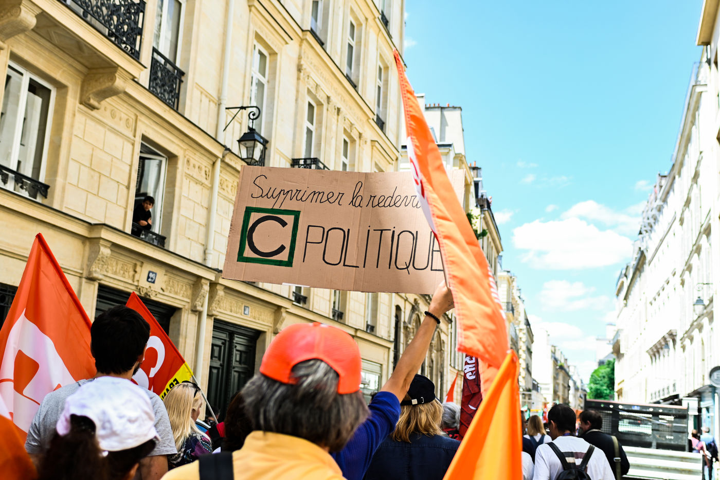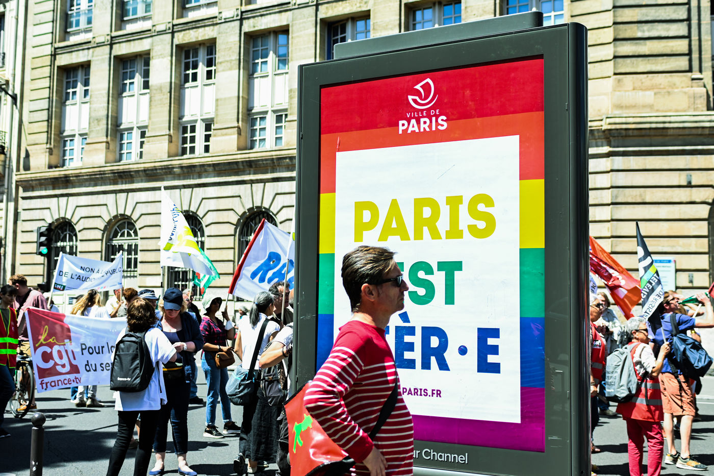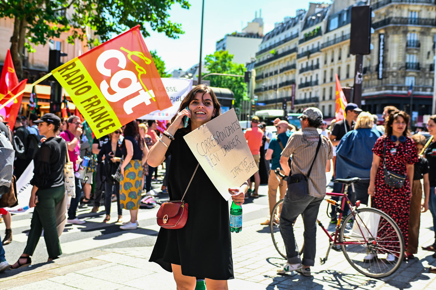 Strike and demonstration of the employees of Radio France and France Televisions against the end of the audiovisual license fee. The programs on the radio and TV were therefore disturbed.
