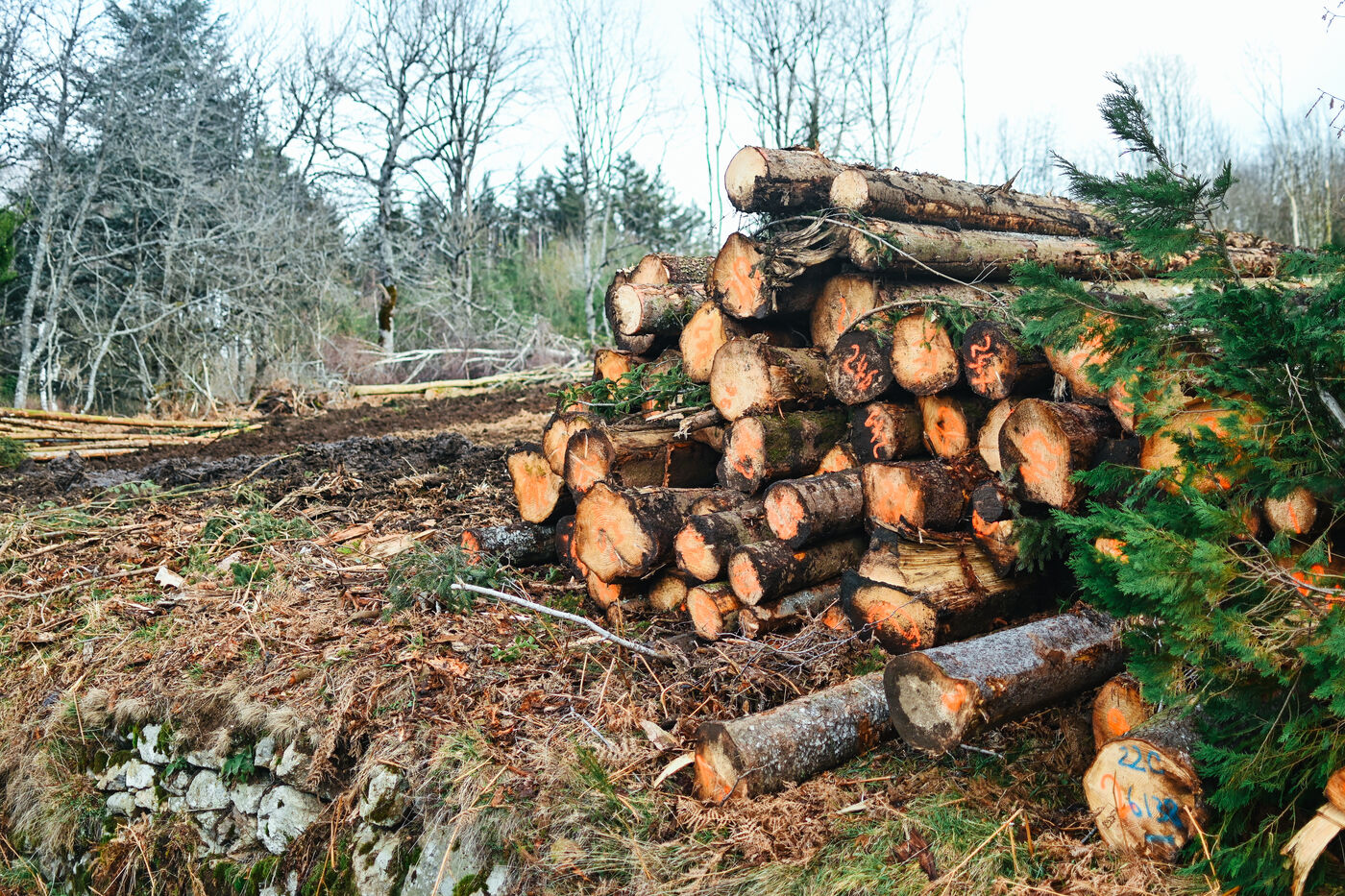 France, Ambierle, 2032-01-14. Some inhabitants of the commune of Ambierle, in the department of the Loire, created a collective named Touche pas a ma foret. In reaction to the project of sale of the communal forest envisaged by the town hall. Photograph by Adrien Fillon / Hans Lucas.