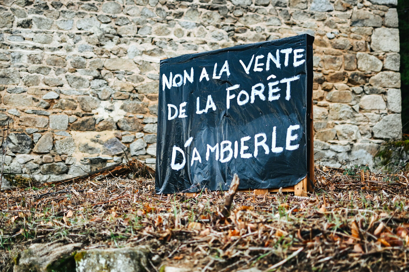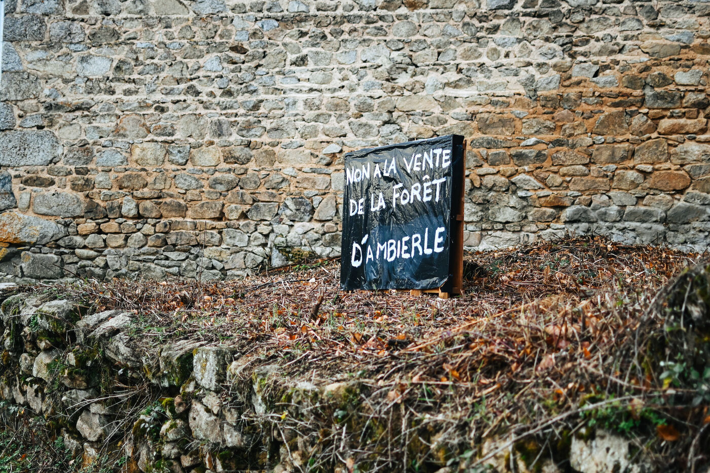 France, Ambierle, 2023-01-14. Certains habitants de la commune d Ambierle, dans le departement de la Loire, ont cree un collectif nomme Touche pas a ma foret. En reaction au projet de vente de la foret communale envisage par la mairie. Photographie par Adrien Fillon / Hans Lucas.