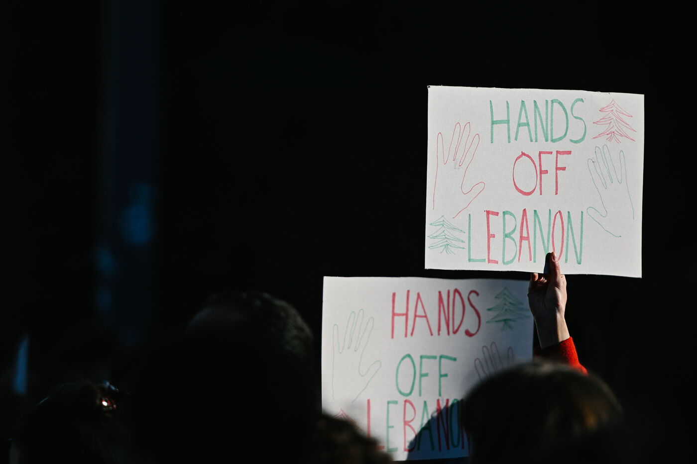 France, Lille, 2024-09-28. Une petite centaine de personnes s'est réunie sur la place de la République, à Lille, le samedi 28 septembre, pour demander un cessez-le-feu au Liban, alors que le pays se fait bombarder par Israël depuis plusieurs jours. Le Hezbollah a confirmé samedi la mort de son chef, Hassan Nasrallah, dans une frappe israélienne. Photographie par Adrien Fillon / Hans Lucas.