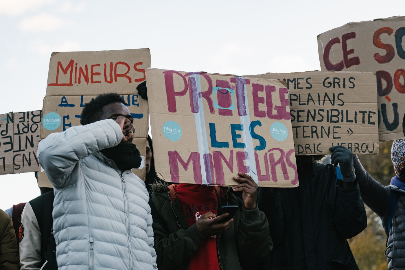 France, Lille, 2024-11-20. Demonstration in support of unaccompanied minors living in a camp in Lille s Bois Blancs district on November 20, International Children s Rights Day. Photograph by Adrien Fillon / Hans Lucas.