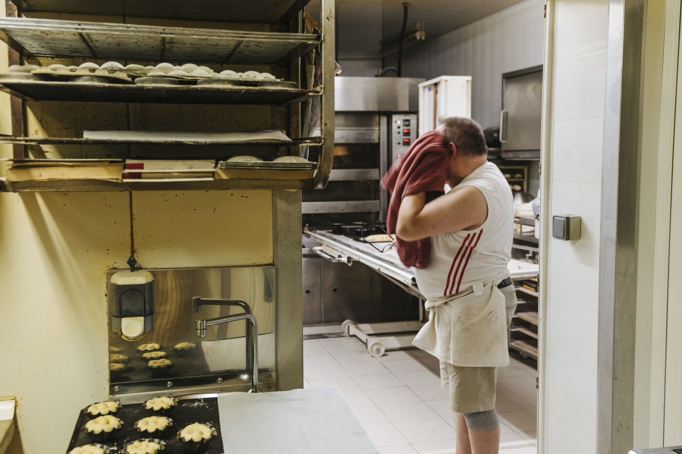 A towel to wipe away the beads of sweat on his forehead, pastries that rise faster because of the heat... It's far from a comfortable time for the profession.