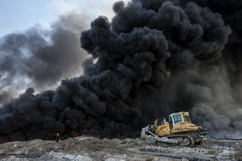 Visibles à plus de 30 km à la ronde, elles ont pour but de faciliter le repli des djihadistes en gênant les frappes aériennes de la coalition et la progression des troupes irakiennes au sol. Chaque jour depuis des mois, pompiers irakiens et ingénieurs pétroliers sont à pied d'oeuvre pour tenter de mettre un terme à cette catastrophe écologique mais leurs moyens sont limités.