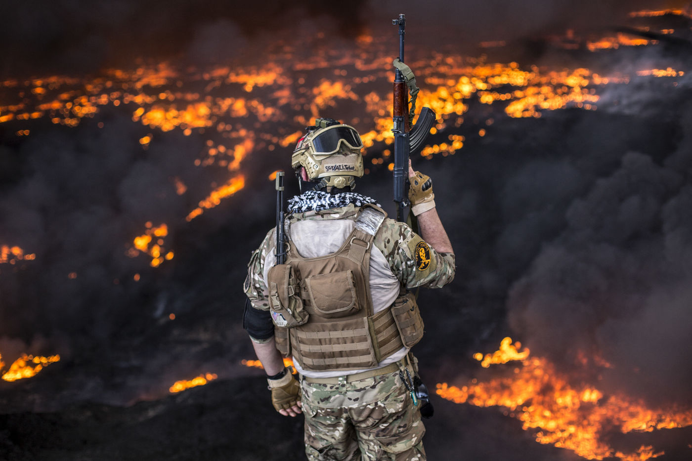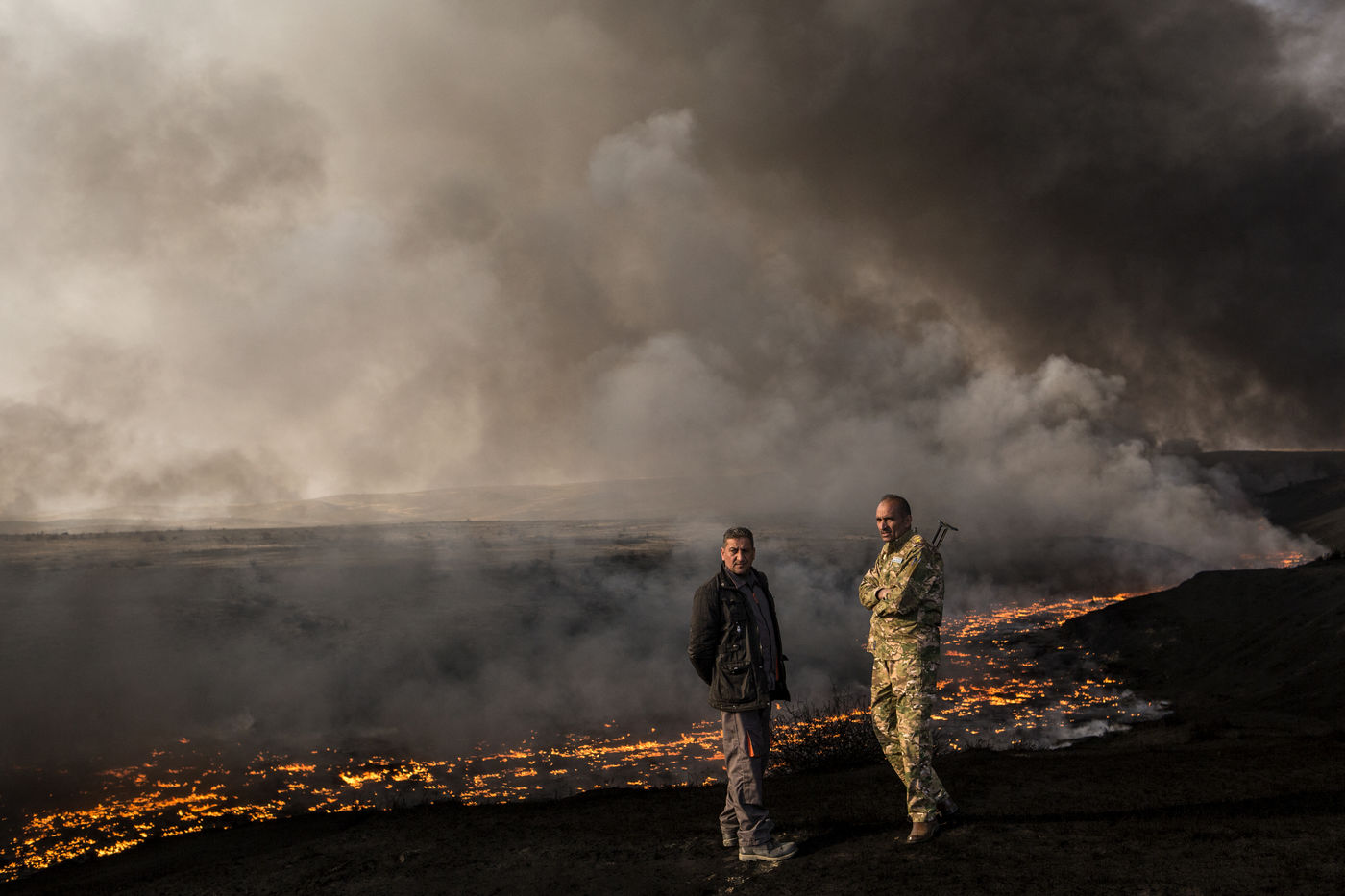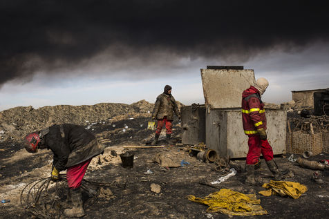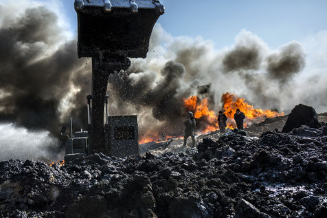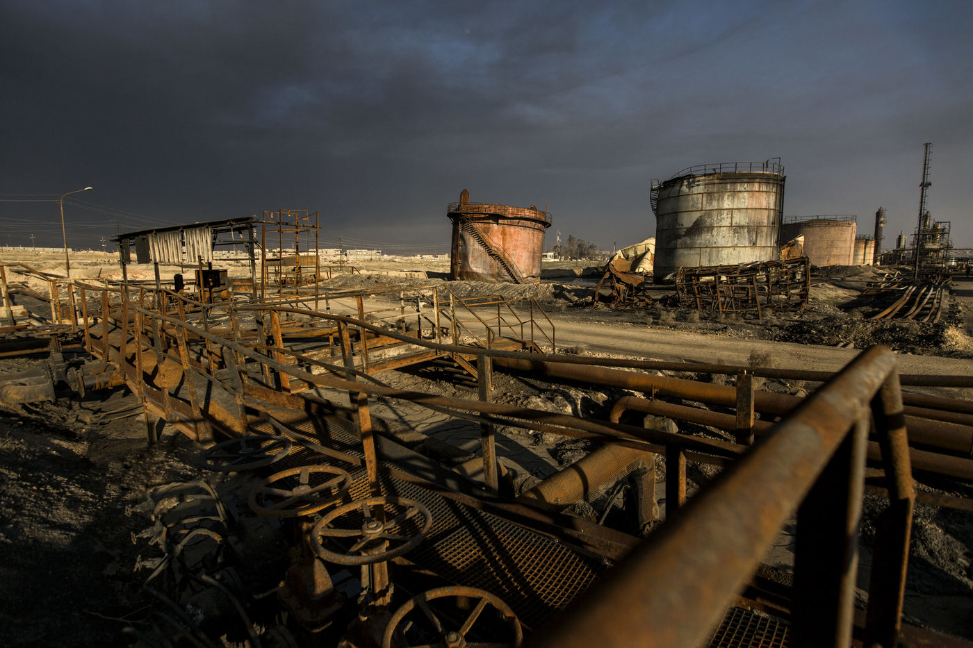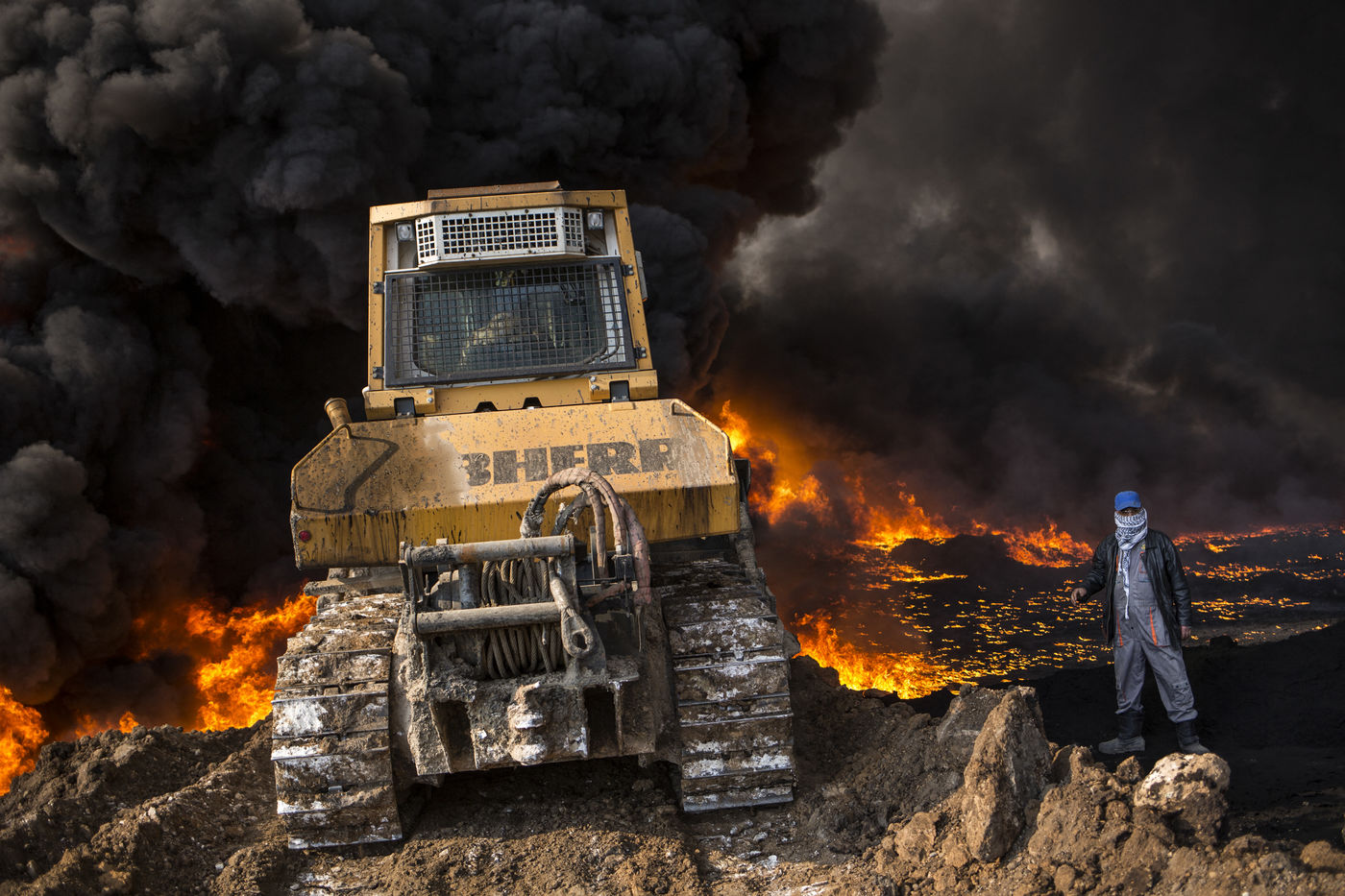 Dans leur fuite en août 2016, les hommes de Daesh ont incendié plus de vingt puits de pétrole dans la région d'Al Qayyarah, ville du Nord de l'Irak située à 70 km au sud de Mossoul. Depuis leur retraite forcée, de hautes colonnes de fumée noire et toxique s'élancent vers le ciel, assombrissant l'horizon.