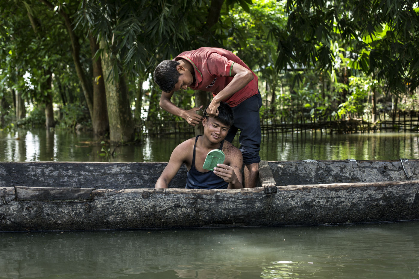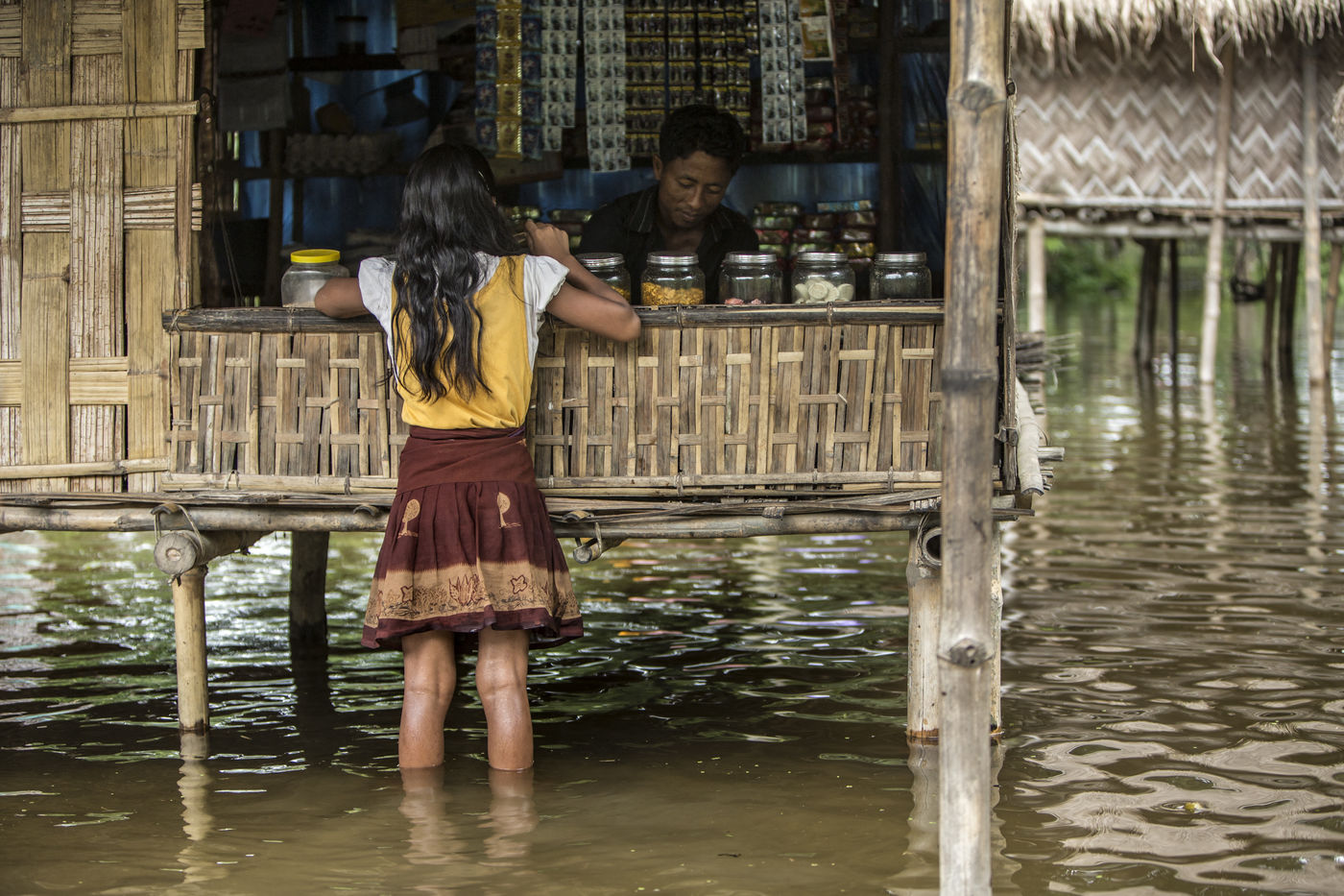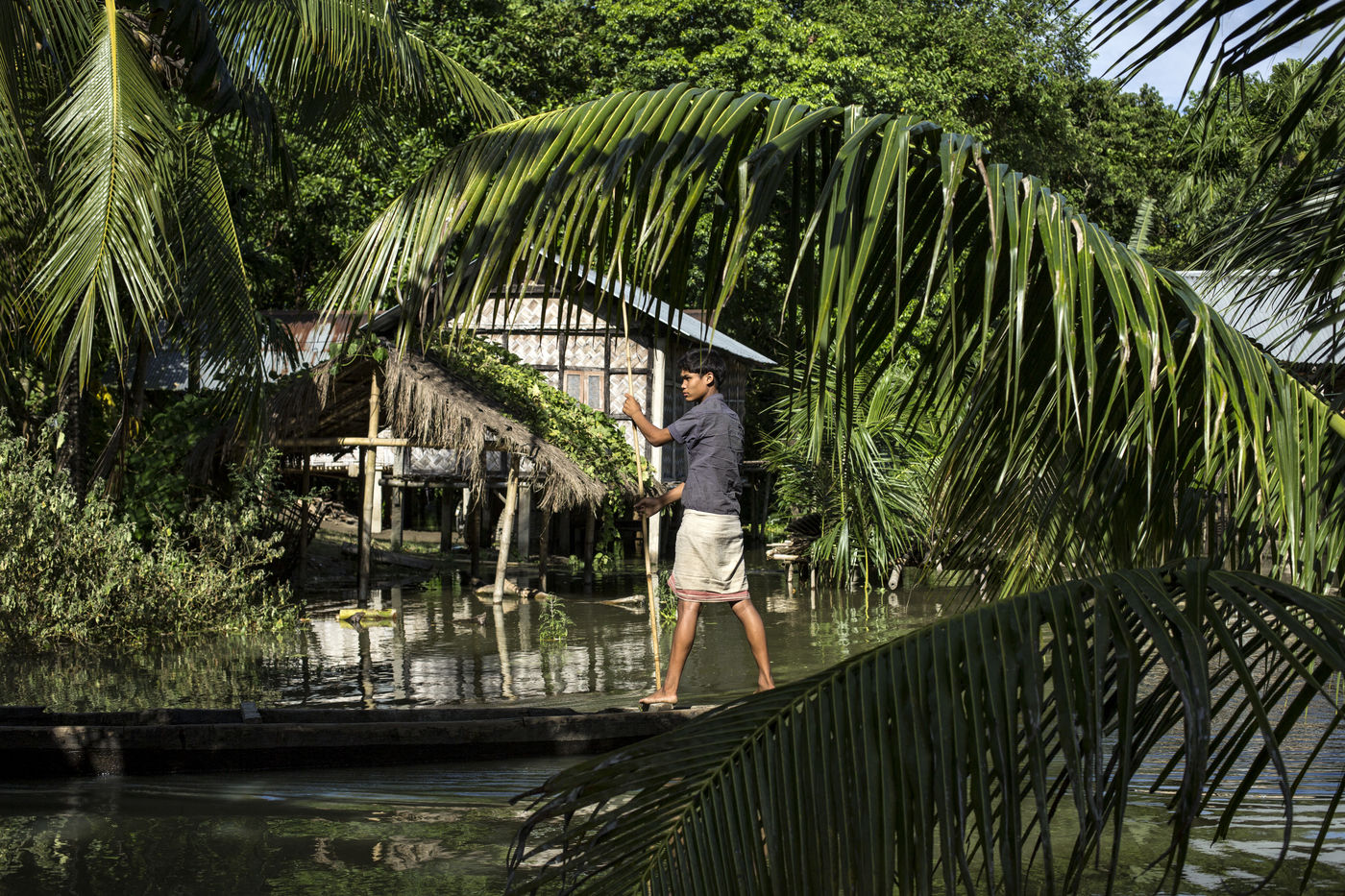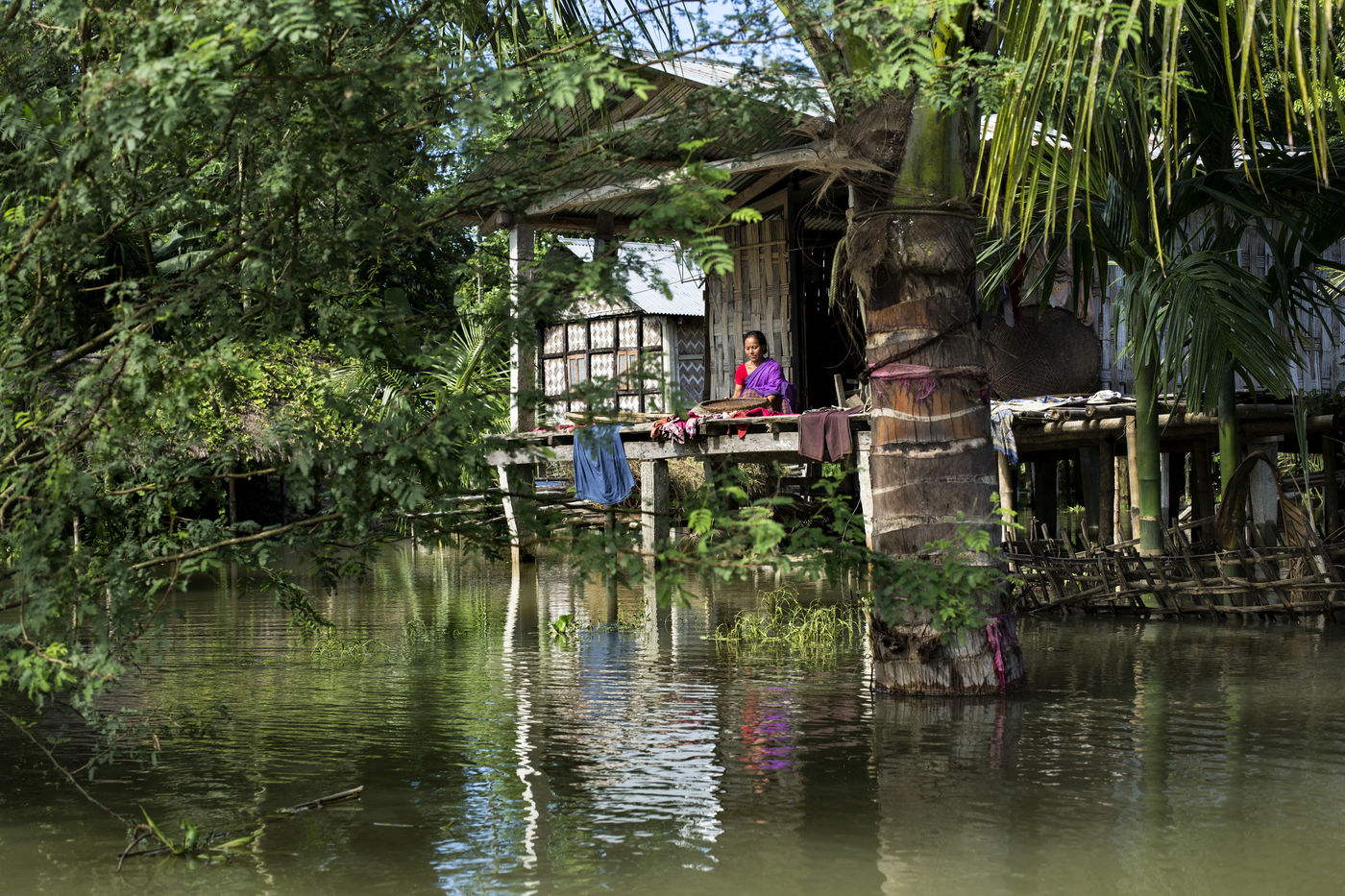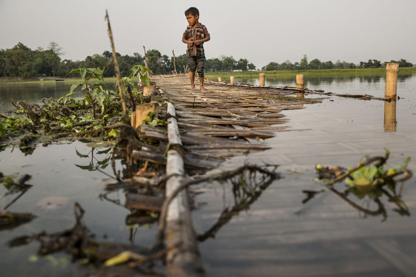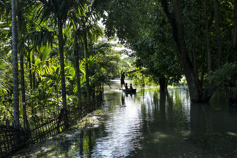 But when the torrential rains arrive, the river swells and Majuli is submerged, nibbled away on all sides. The water invades the land and destroys the crops. Its banks are torn away in whole sections. The strong currents prevent the ferry from crossing and the island is left without electricity. Every year, several villages are swept away by the floods.