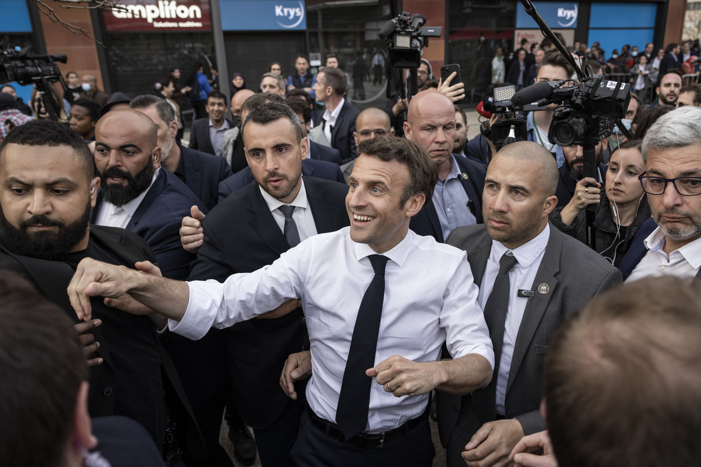 En campagne pour la présidentielle, le candidat Emmanuel Macron était en deplacement à Dijon le 28-03-22