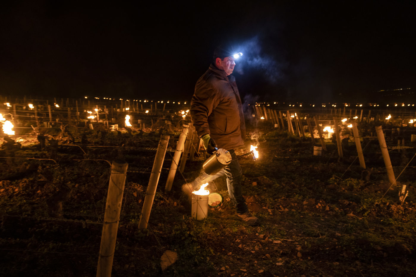 Pour combattre le gel qui survient après des tempétatures printanières, les vignerons de Côte d'Or ont allumé des bougies dans les parcelles de chardonnay (1er crus et grands crus) afin de sauver leur millésime 2022.