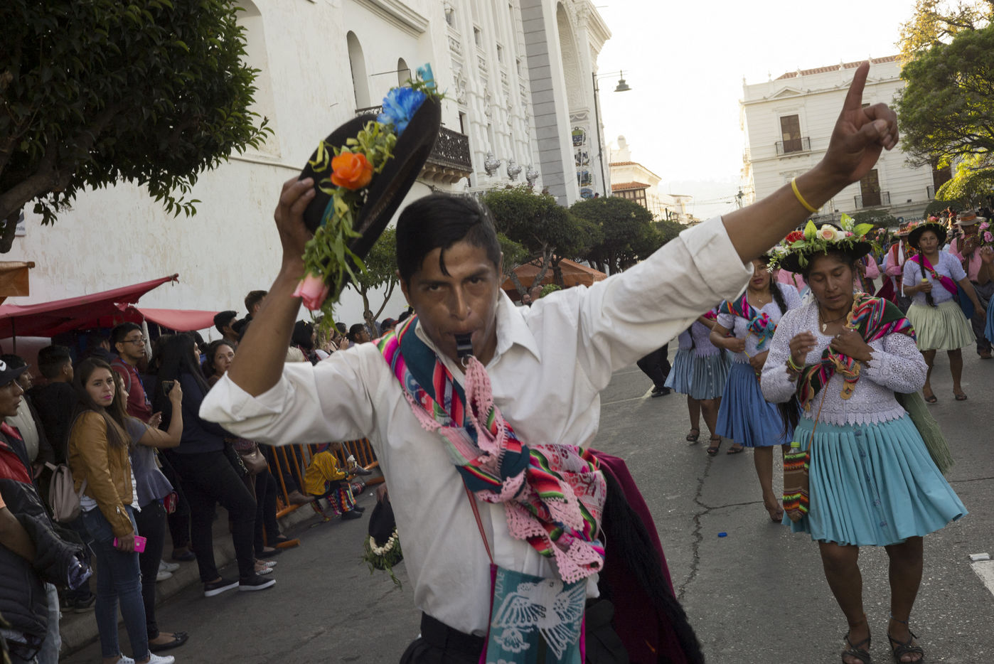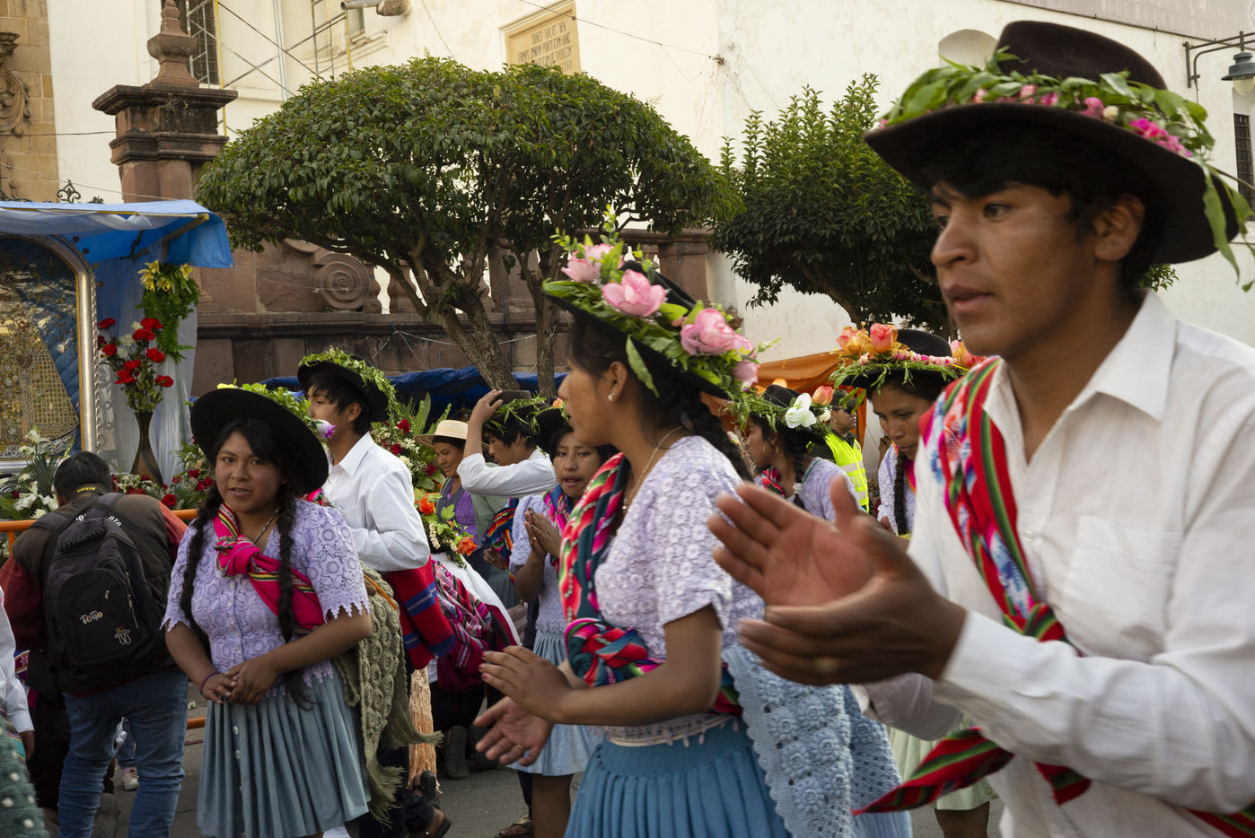 Fiesta de la Virgen de Guadalupe. Cette fête se déroule durant la première quinzaine de septembre. Les fidèles viennent rendre grâce à la Vierge de Guadalupe, patronne de la ville de Sucre. Une messe est célébrée en l'honneur de la Vierge de Guadalupe sur la place principale de Sucre, viennent ensuite la procession de la Vierge et le défilé folklorique (musique, danses, jeux traditionnels) auquel participent des milliers de participants. Bolivie, september 2018.