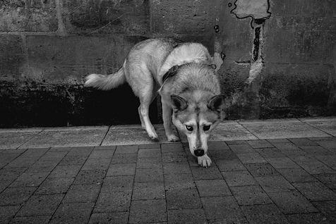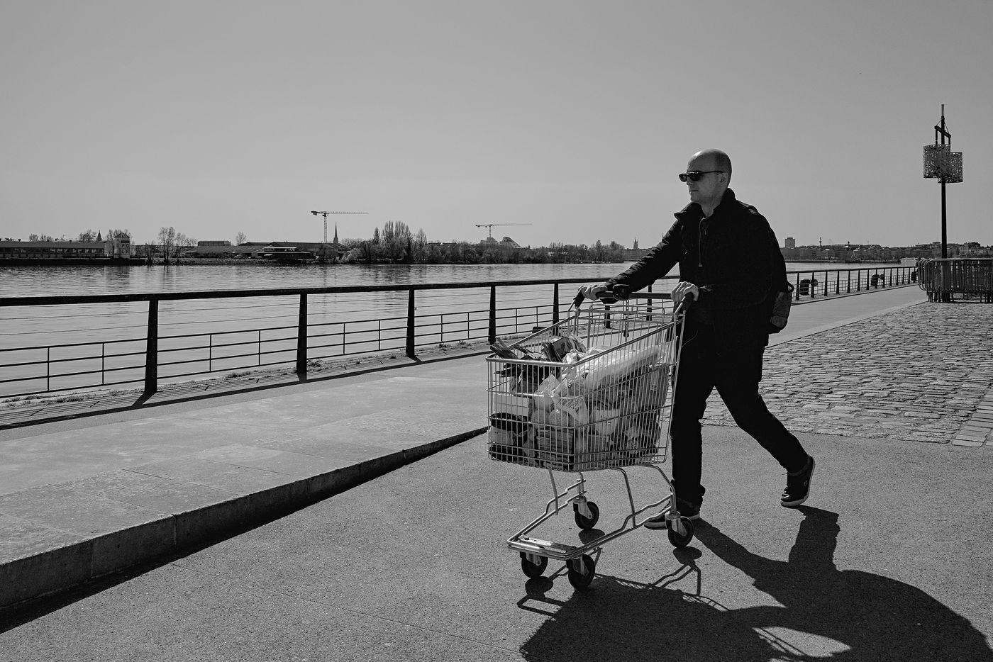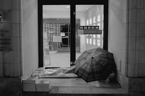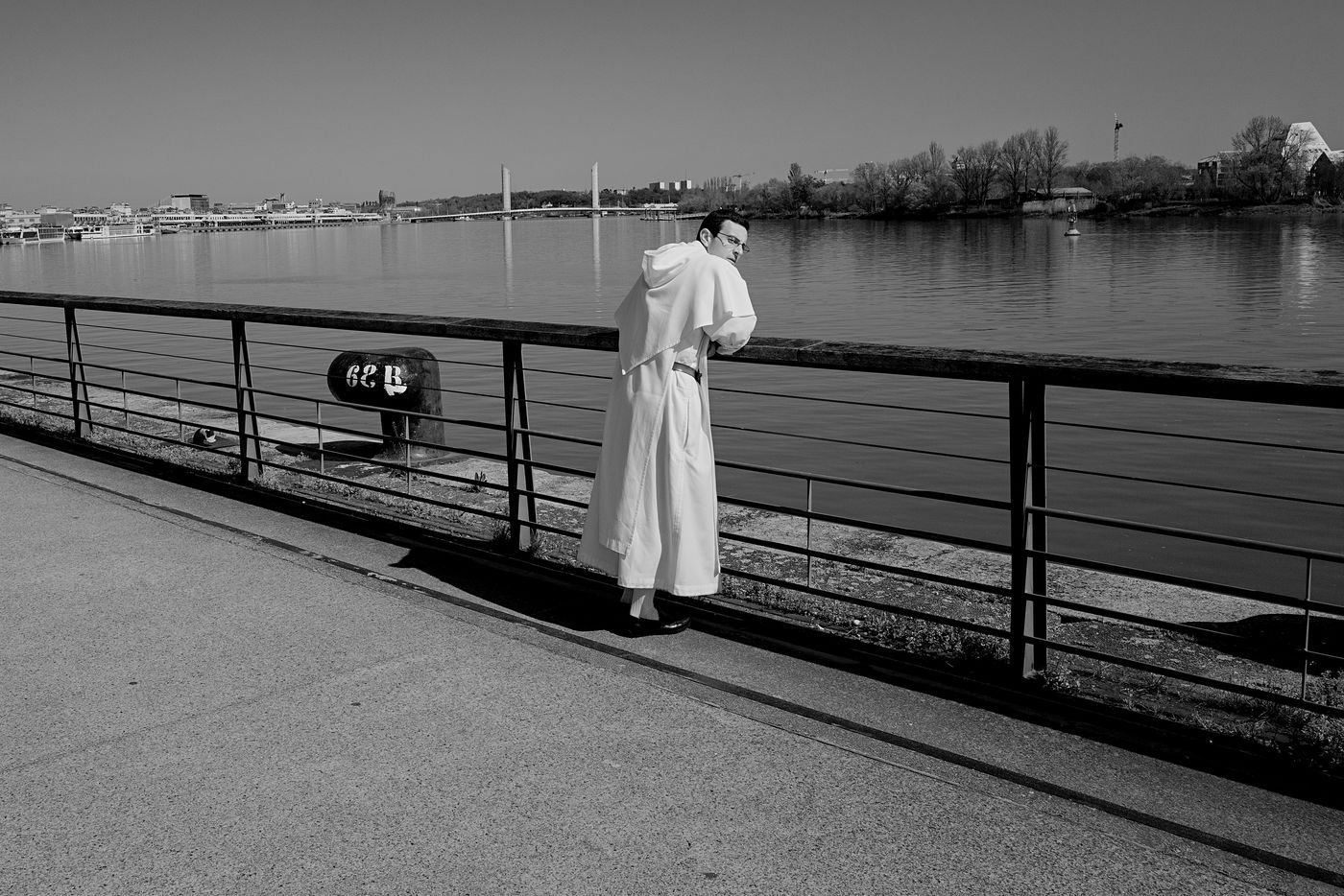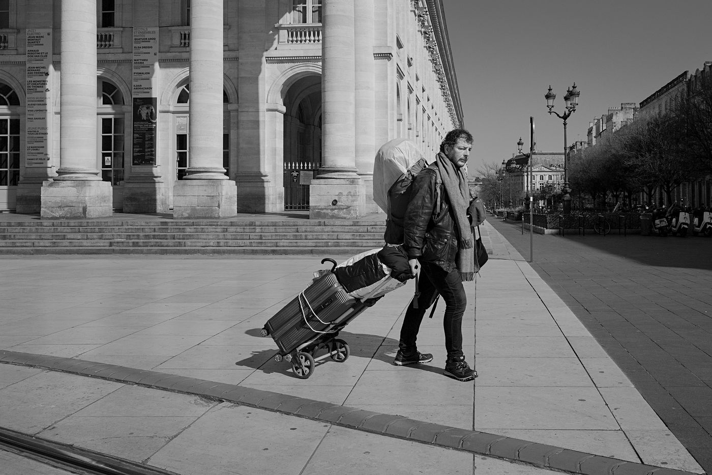Bordeaux under lockdown. Life is slow. The people of Bordeaux are moving in a depopulated space where space-time is inexorably stretching. The fear of being contaminated sets in. The minimum distance of 1.5 metres between each person to limit contamination with Covid-19 is respected. The fear of the Covid-19, an invisible threat, is accompanied by distrust of the other. March - April 2020.