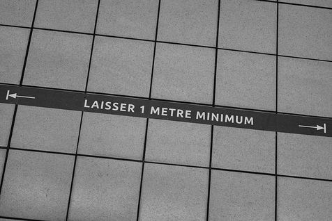 Bordeaux sous confinement. La vie est au ralenti. Les bordelais se déplacent dans un espace dépeuple où l'espace-temps s'étire inexorablement. La peur d'être contaminé s'installe. La distance minimale de 1,5 mètre entre chaque personne pour limiter les contaminations au Covid-19 est respectée. La crainte du Covid-19, menace invisible, s'accompagne de la méfiance de l autre. Mars - avril 2020.