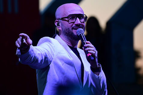 Turkish musician Beduk performs on stage at Anitpark on the occasion of the May 19 Commemoration of Ataturk, Youth and Sports Day in Ankara, Turkey on May 19, 2025.