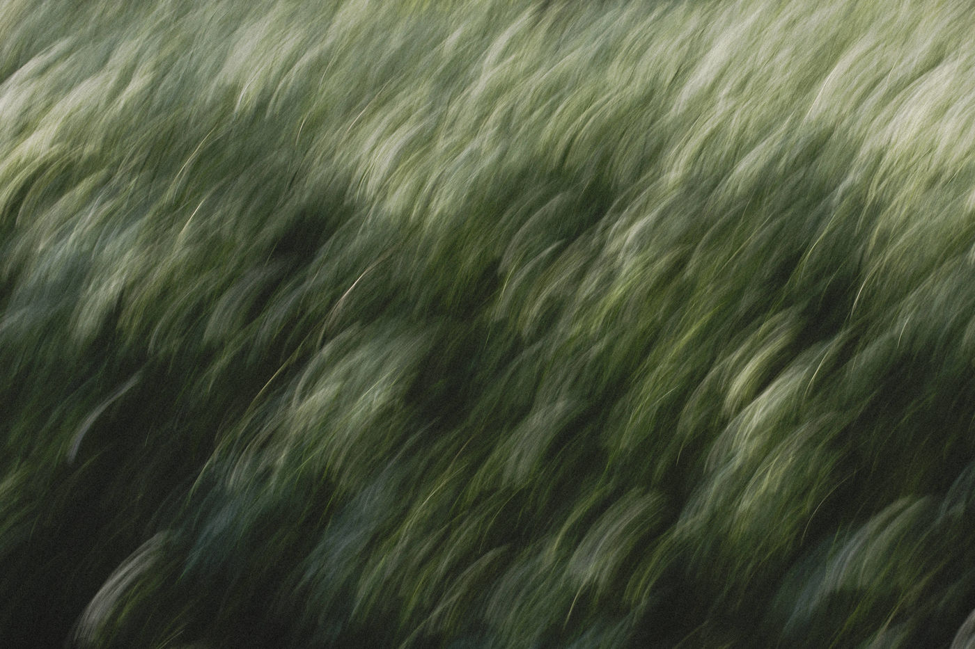 She disappears into the tall grass. The immensity of the silky carpet stuns her, its depth engulfs her. She admires the shades of green, contemplating the effects of the sun on the vegetal lace.