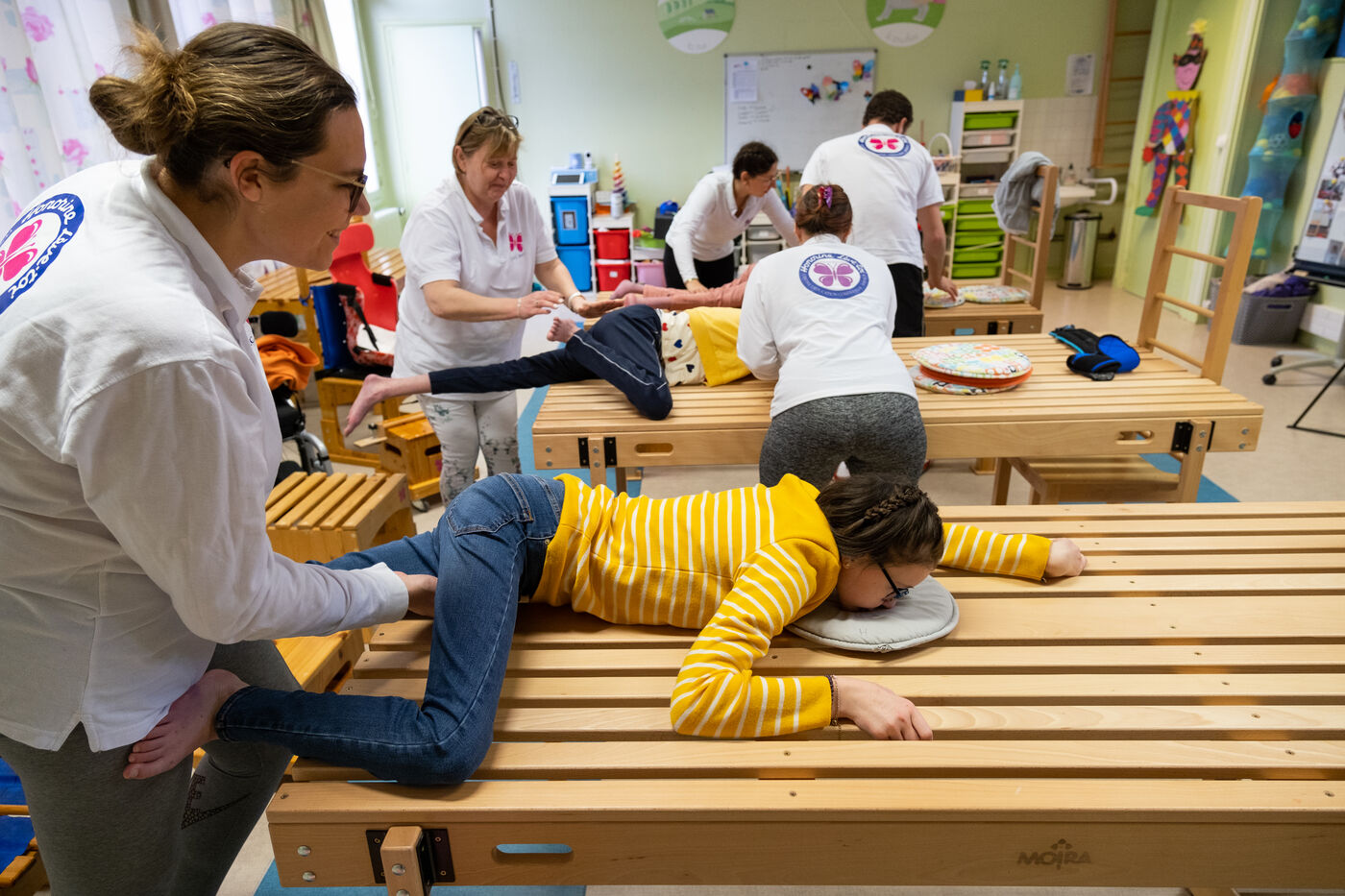 The association "Honorine lève toi" created a Conductive Education Center in 2012. It welcomes up to 6 children with disabilities, all year round.