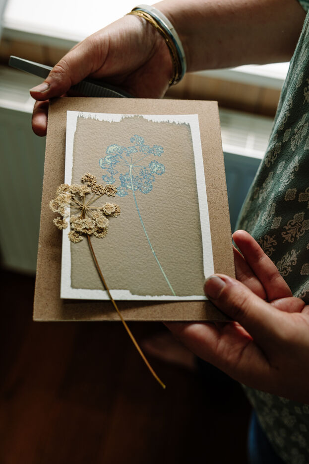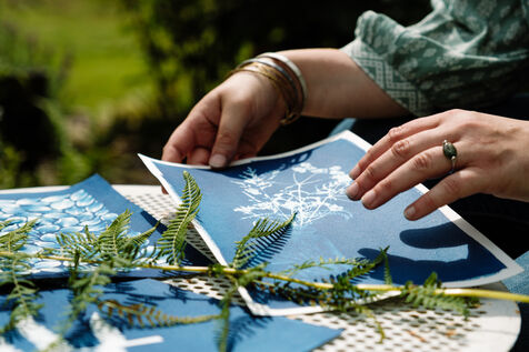 Marjorie, alias l'Hortesienne, est créatrice de cyanotypes dans la Manche, en Normandie.