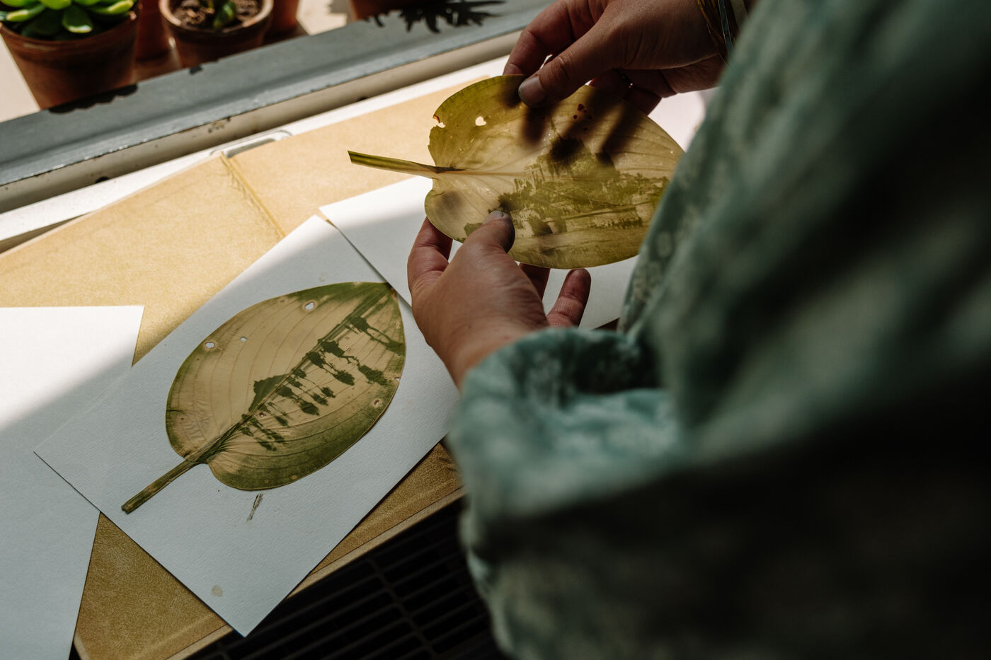 Marjorie, aka l'Hortesienne, creates cyanotypes in the Manche region of Normandy.
