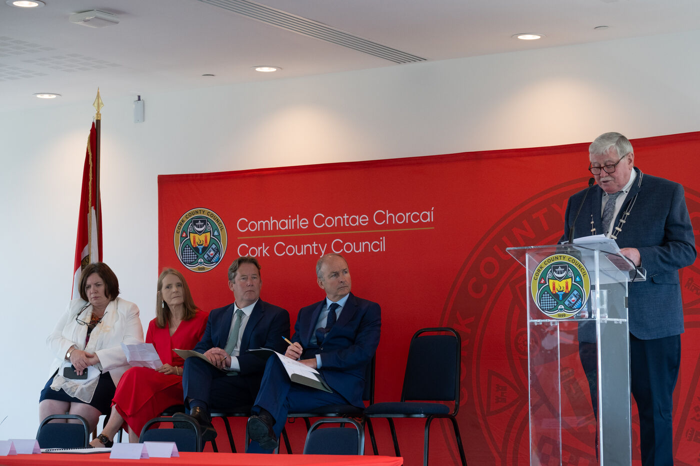 Taoiseach Micheál Martin, Transport Minister Darragh O’Brien, and Minister Jerry Buttimer attended the signing, highlighting government support for regional infrastructure.