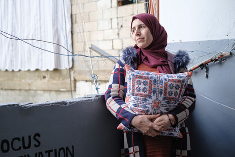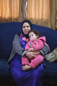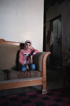 Arrivée d'Idleb il y a 10 ans, elle vit avec son mari et sa belle-famille au sein du camp. Dix ans qu'elle n'a pas revu sa famille, restée à Idleb mais déplacée dans leur propre ville. Elle ne peut pas y retourner et ils ne peuvent pas en sortir.