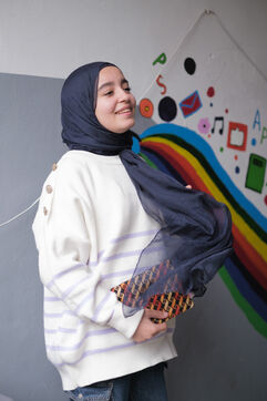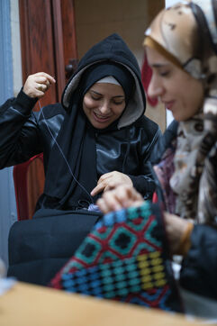 Elle se rend à Alsama tous les jours pour créer de nouveaux designs avec ses collègues, réfugiées syriennes elles-aussi. Elles s'inspirent de motifs palestiniens et syriens pour transmettre les traditions de générations en générations.