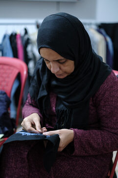 She goes to Alsama every day to create new designs with her colleagues, who are also Syrian refugees.