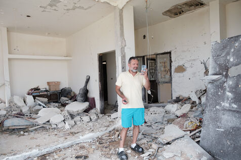 Nabil, a resident of the village, regularly goes round the neighboring houses destroyed by Israeli strikes to take stock of the damage and give news to the families.