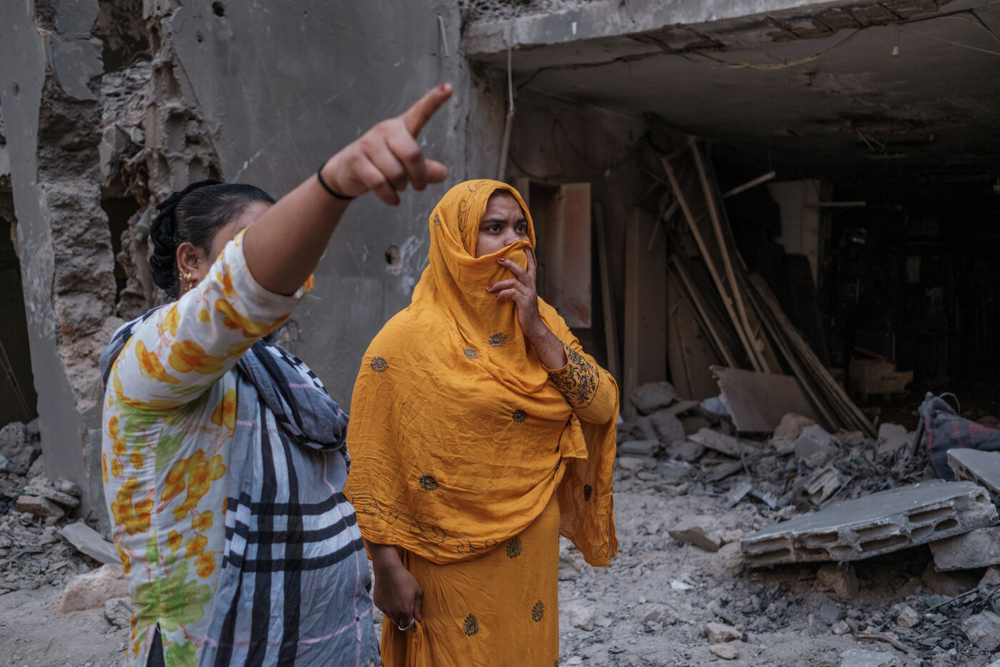 Neighbors and residents walk through the rubble of a building at the site of an Israeli strike on the Basta neighborhood in the heart of Beirut on October 10, 2024. At least 22 people were killed in the strike, and over a hundred were injured.
