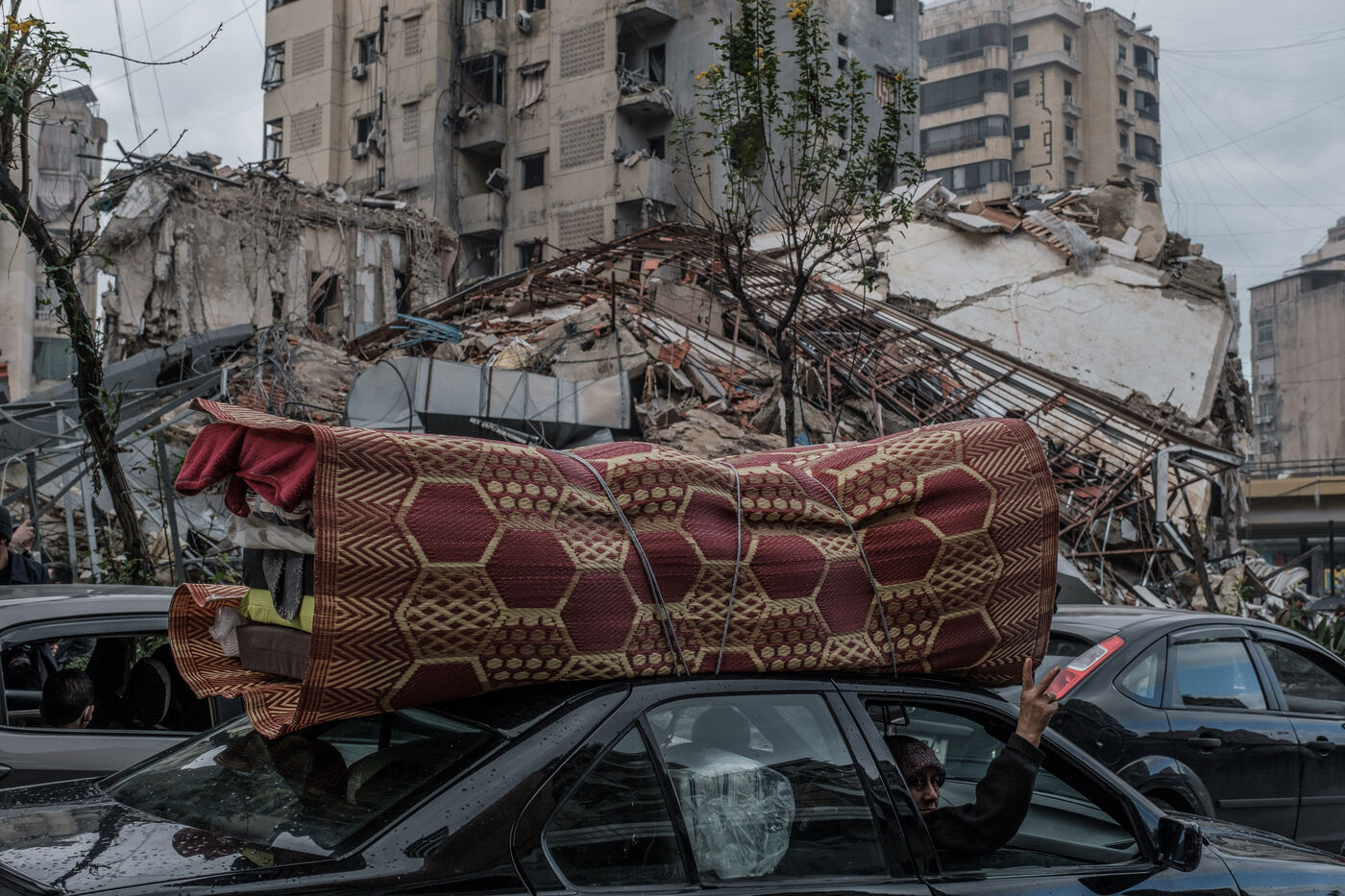 Dans la banlieue sud de Beyrouth, les Libanais, ainsi que des partisans du Hezbollah et Amal, célèbrent le cessez-le-feu, au milieu des ruines. Ce 27 novembre, les habitants, eux, retournent constater ce qu'il reste de leur maison et la dévastation de leurs quartiers. Jusqu'à la dernière minute avant le cessez-le-feu, l'armée israélienne a bombardé sans répit la capitale et le sud du Liban. Dans tout le Liban, des milliers de personnes rentrent chez elles après avoir fui les bombardements deux mois plus tôt.