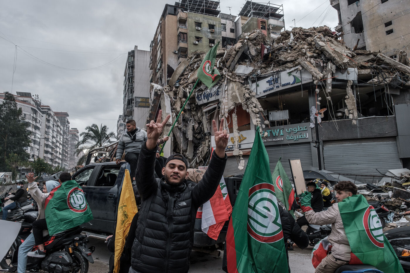 In the southern suburbs of Beirut, the Lebanese, along with supporters of Hezbollah and Amal, celebrate the ceasefire amid the ruins. On November 27, the inhabitants returned to see what was left of their homes and the devastation of their neighborhoods. Until the last minute before the ceasefire, the Israeli army bombarded the capital and southern Lebanon relentlessly.
