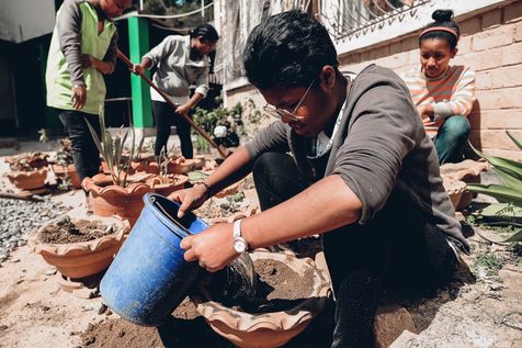 The center takes in around 150 children who are fully cared for and educated up to the age of 18. Some may even learn a trade (hairdressing, sewing, tourism trades). The organization is funded by sponsoring children (60%) and by self-financing (40%). Many solutions are gradually being implemented to become self-sufficient (vegetable patch, water recovery, development of biogas, manufacture of coal balls from waste, manufacture of objects made from recycled material). These also have ecological and educational value.
