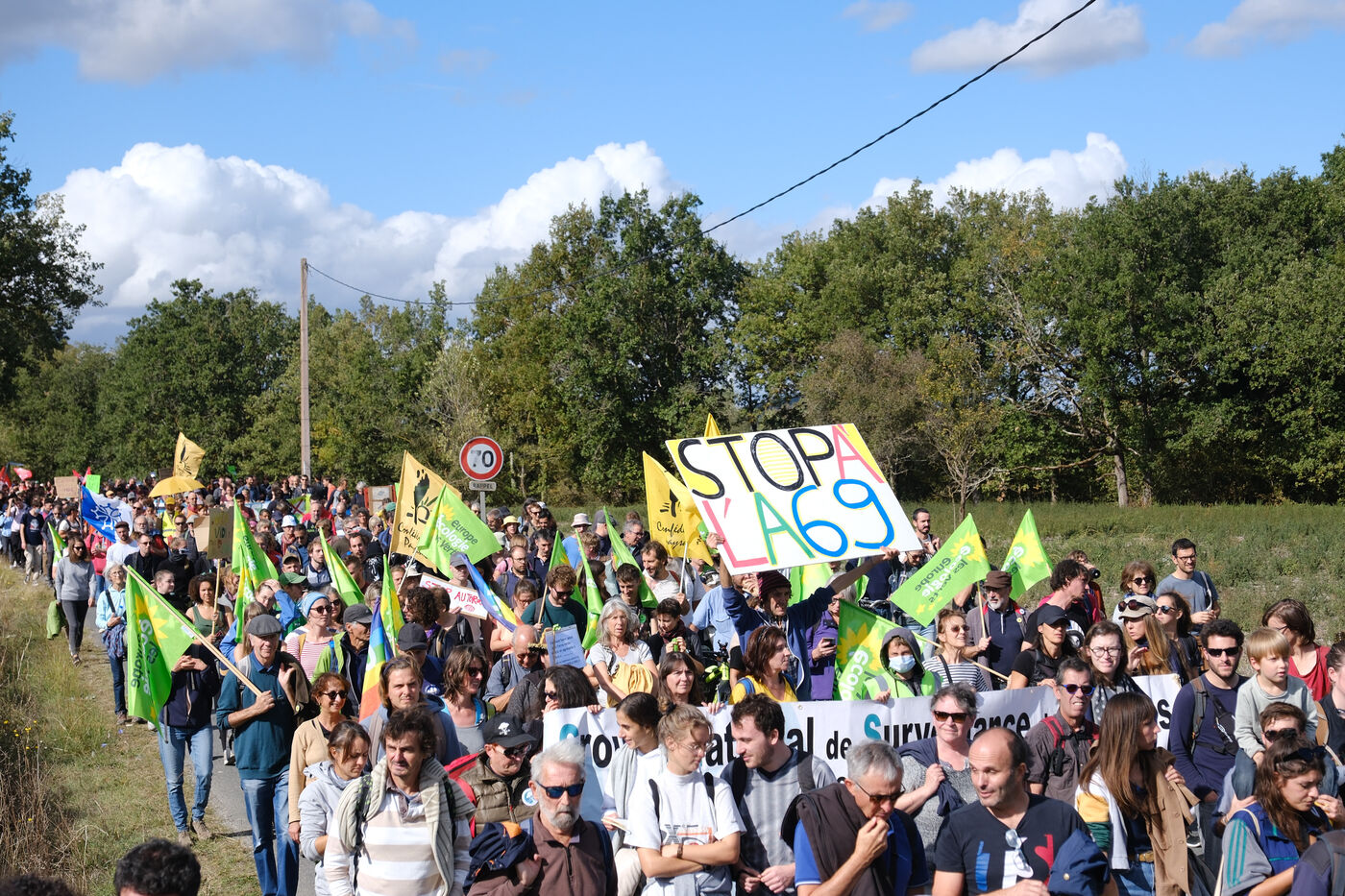 Ramdam sur le Macadam, a massive mobilization on the A69 motorway site to slow down the concreting work undertaken by VINCI and ATOSCA on the stretch of freeway between Toulouse and Castres, organized by Soulevements de la Terre, La Voix est Libre and Extinction Rebellion.