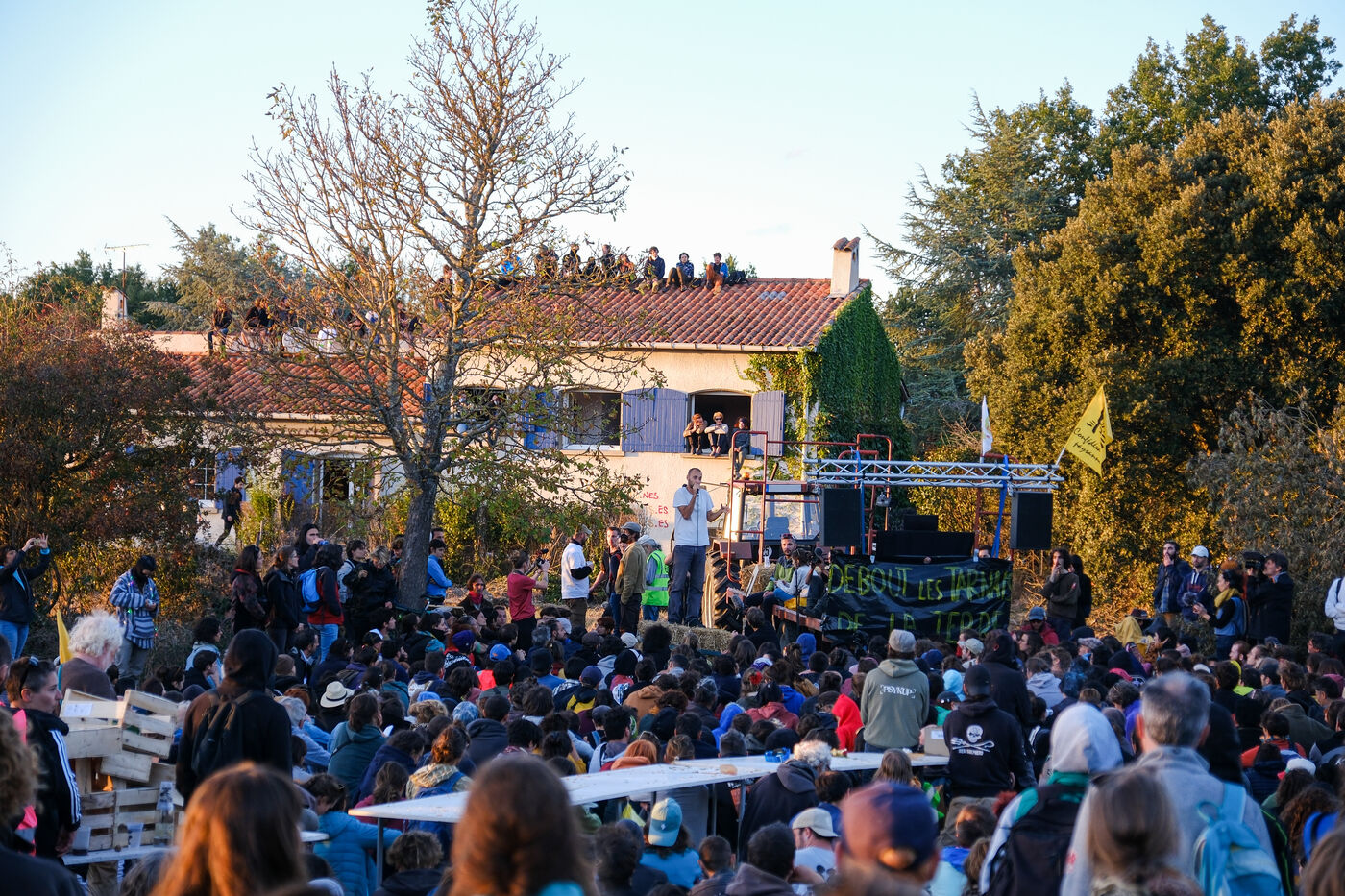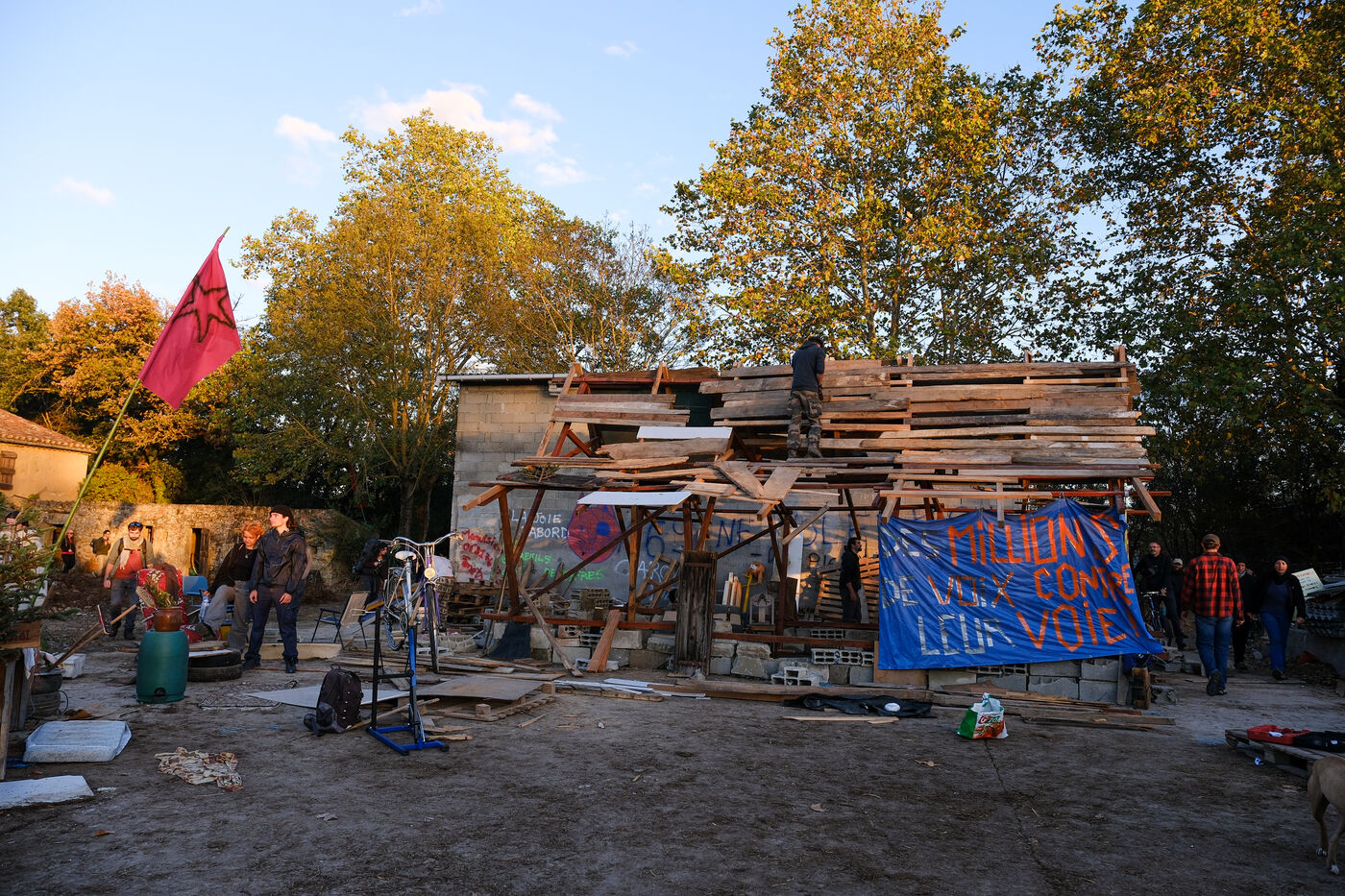 On the sidelines of the demonstration, another group of demonstrators took action. Setting fire to two bettonieres at the Saix cement plant. Finally, the corteges joined up on the "camp", which was gradually transformed into a ZAD.