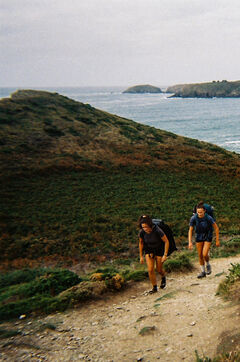 Le sentier du GR 34 à Belle-Île-en-Mer offre une expérience de randonnée inégalée, dévoilant la splendeur sauvage de cette île bretonne. Les falaises majestueuses plongent dans l'Atlantique, offrant des panoramas à couper le souffle, tandis que des criques cachées et des plages de sable fin ponctuent le littoral. Ce chemin côtier, mêlant nature et histoire, traverse des landes parfumées et des villages pittoresques. Les vestiges historiques, tels que le phare de Goulphar, ajoutent une dimension fascinante à cette aventure. Deux femmes inexpérimentées et un chien se sont lancés sur le sentier en autonomie. Pour une totale déconnexion, j'ai choisi un appareil photo jetable pour la prise de vue. Malgré quelques blessures, des campements modestes, un dénivelé innatendu et une météo incertaine, le GR 34 de Belle-Île-en-Mer a été une exploration captivante entre terre et mer pour les trois acolytes.