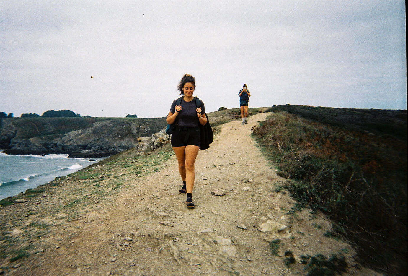 The GR 34 trail in Belle-Île-en-Mer offers an unrivalled hiking experience, revealing the wild splendor of this Breton island. Majestic cliffs plunge into the Atlantic, offering breathtaking panoramas, while hidden coves and sandy beaches dot the coastline. This coastal path, a blend of nature and history, crosses fragrant moors and picturesque villages. Historical relics, such as the Goulphar lighthouse, add a fascinating dimension to this adventure. Two inexperienced women and a dog set out on the trail on their own. For total disconnection, I opted for a disposable camera for shooting. Despite a few injuries, modest campsites, unexpected elevation changes and uncertain weather, the GR 34 in Belle-Île-en-Mer was a captivating exploration between land and sea for the three acolytes.