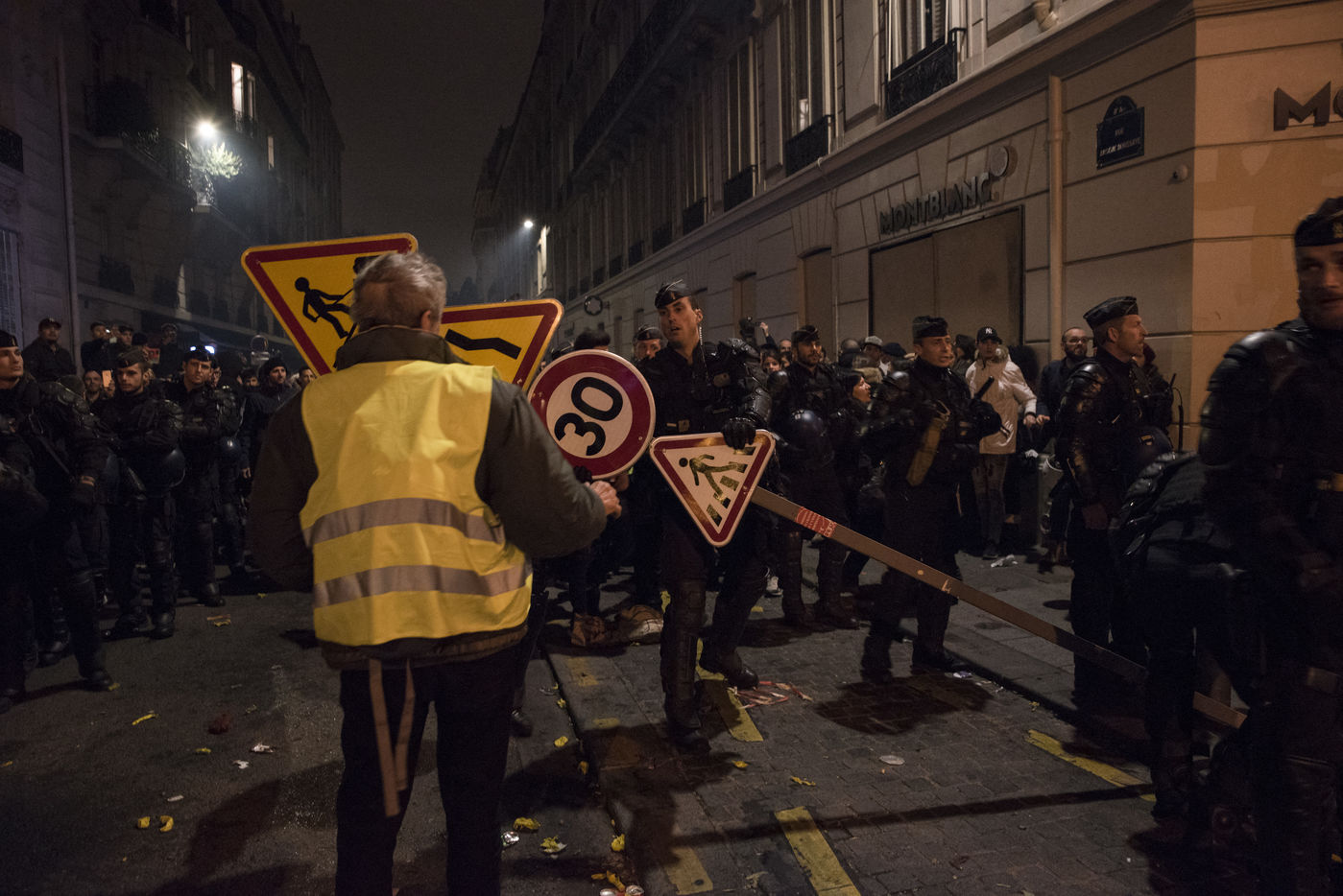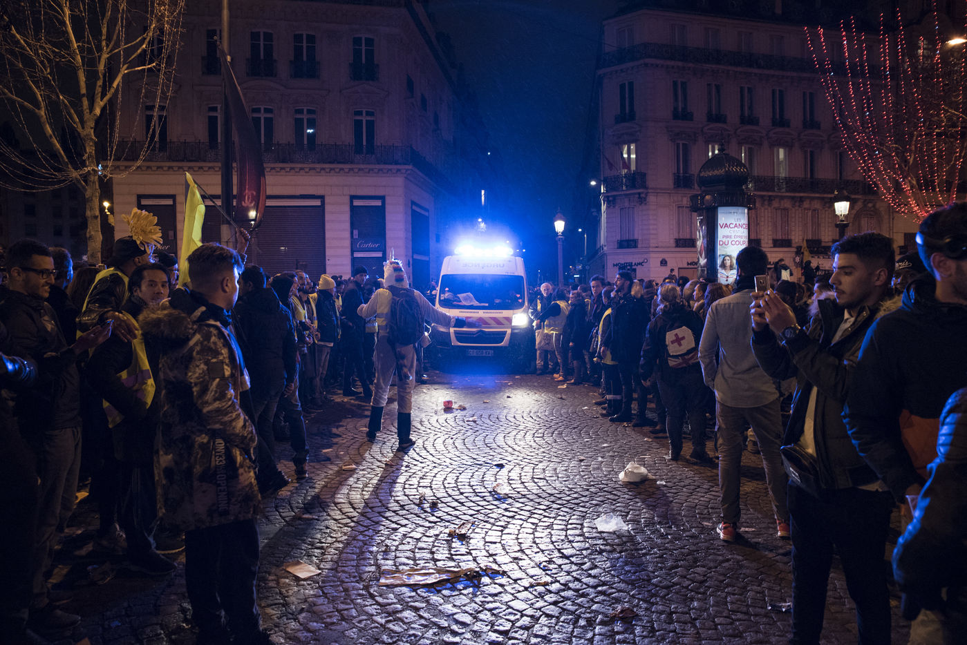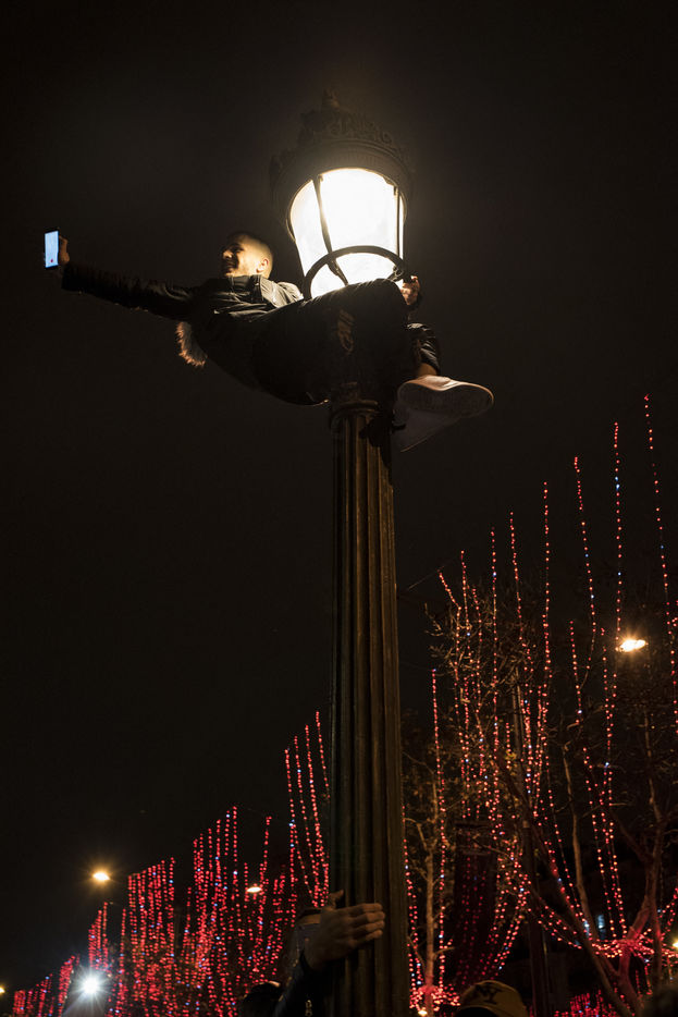 Some pictures taken on the Champs Elysées during the sound and light show organized for the New Year 2019 and which was followed by a stir between Yellow Vests, spectators and the police.