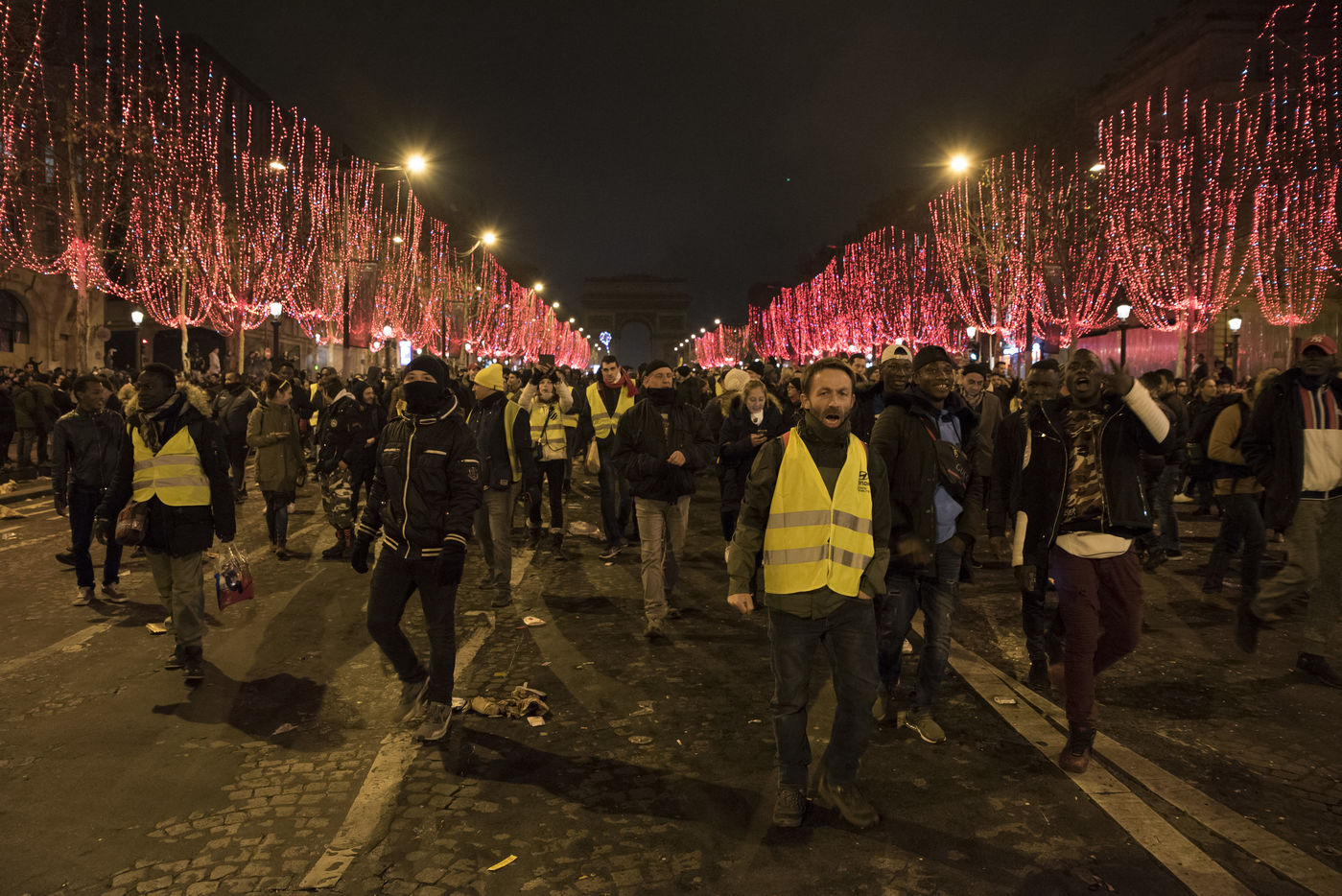 Quelques clichés réalisés sur les Champs Elysées lors du spectacle de sons et lumières organisé pour le nouvel an 2019 et qui fut suivi d'agitation entre des Gilets Jaunes, des spectateurs et les forces de l'ordre.