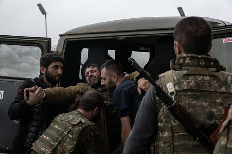 Après 6 semaines de combats faisant au moins 2300 morts cotés arménien et face à la supériorité technologique de ses adversaires, le premier ministre arménien Nikol Pachinian signe, sous l'égide de la Russie, un accord de cessez le feu total avec le président azerbaidjanais Ilham Aliyev. Un accord qui consacre la victoire d'Ilham Aliyev en prévoyant notamment la rétrocession de districts à l'Azerbaïdjan. Mais aussi celle de Vladimir Poutine, arbitre de la situation, qui déploie ses soldats de la paix et renforce sa présence dans le Caucase du sud.