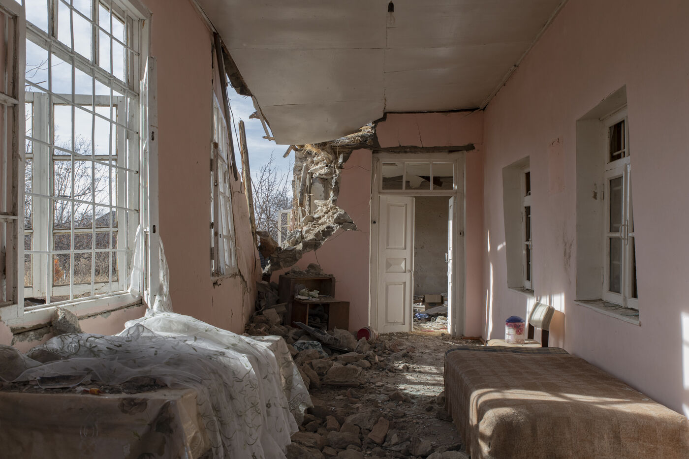 Si beaucoup refusent de parler de défaite, la perte de la moitié du Karabakh a profondément marqué la société arménienne. Signé le 10 novembre 2020 par le premier ministre Nikol Pachinian, l?armistice a été vécu comme une trahison par une partie de la population, qui peine aujourd?hui à retrouver confiance en ses institutions. Pour assurer sa survie, l?Arménie s?est tournée vers la Russie, la traditionnelle puissance tutélaire, qui déploie près de 2000 soldats dans le Karabakh afin de maintenir le fragile cessez-le-feu avec l?Azerbaïdjan. Mais, profitant des défaites russes sur le front ukrainien, Bakou multiplie les coups de main le long de la frontière, et occupe aujourd?hui 50 km2 du territoire national arménien. Les 12 et 13 septembre 2022, les bombes azerbaïdjanaises ont frappé plusieurs localités de l?Est de l'Arménie. Dans le village Sotk, les maisons bombardées sont reconstruites sous les yeux des troupes ennemies, campant sur les collines environnantes.