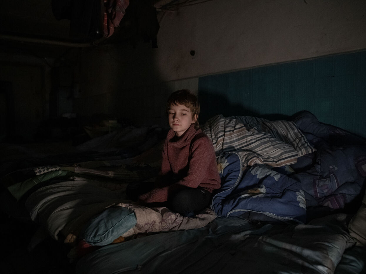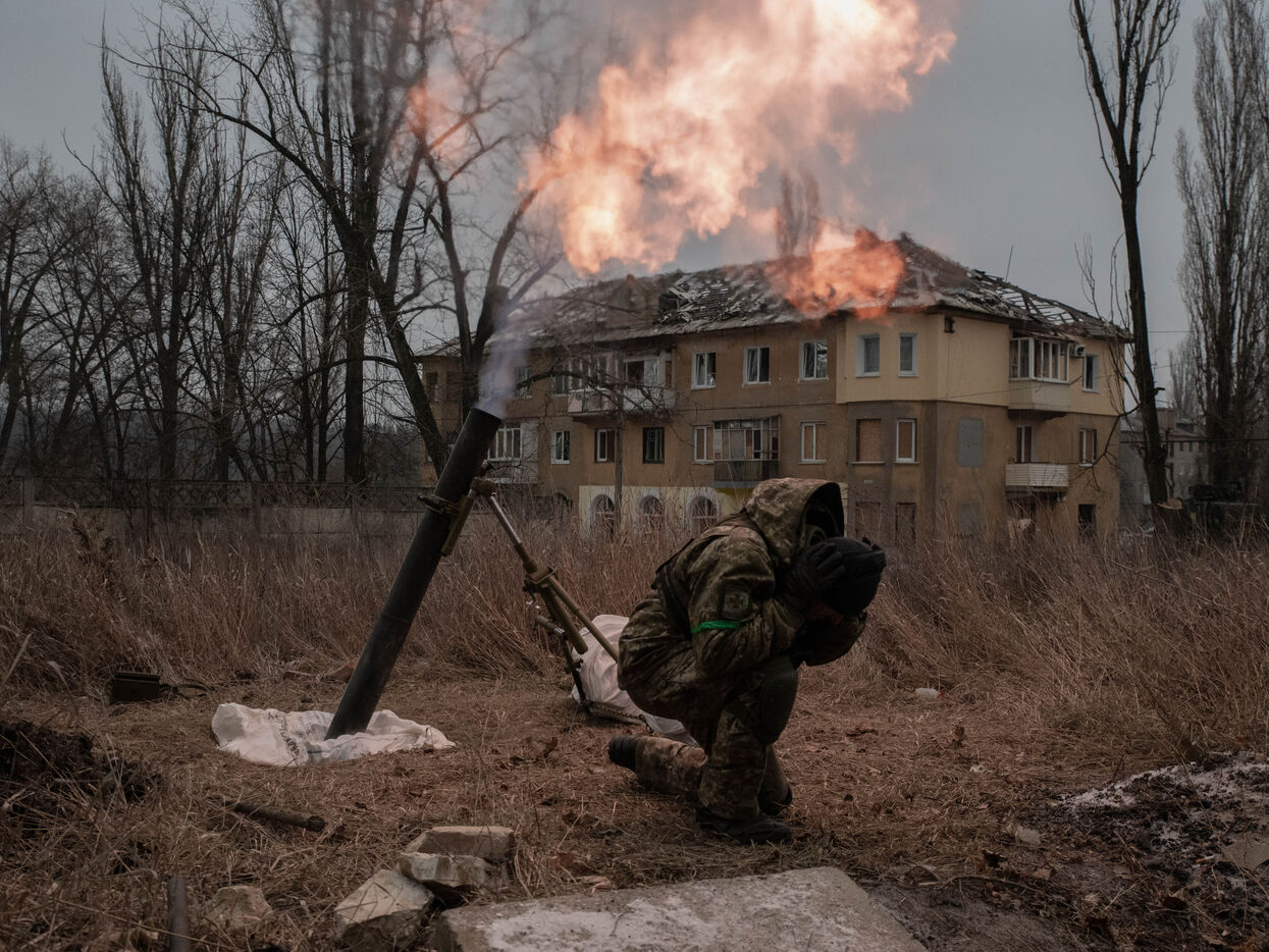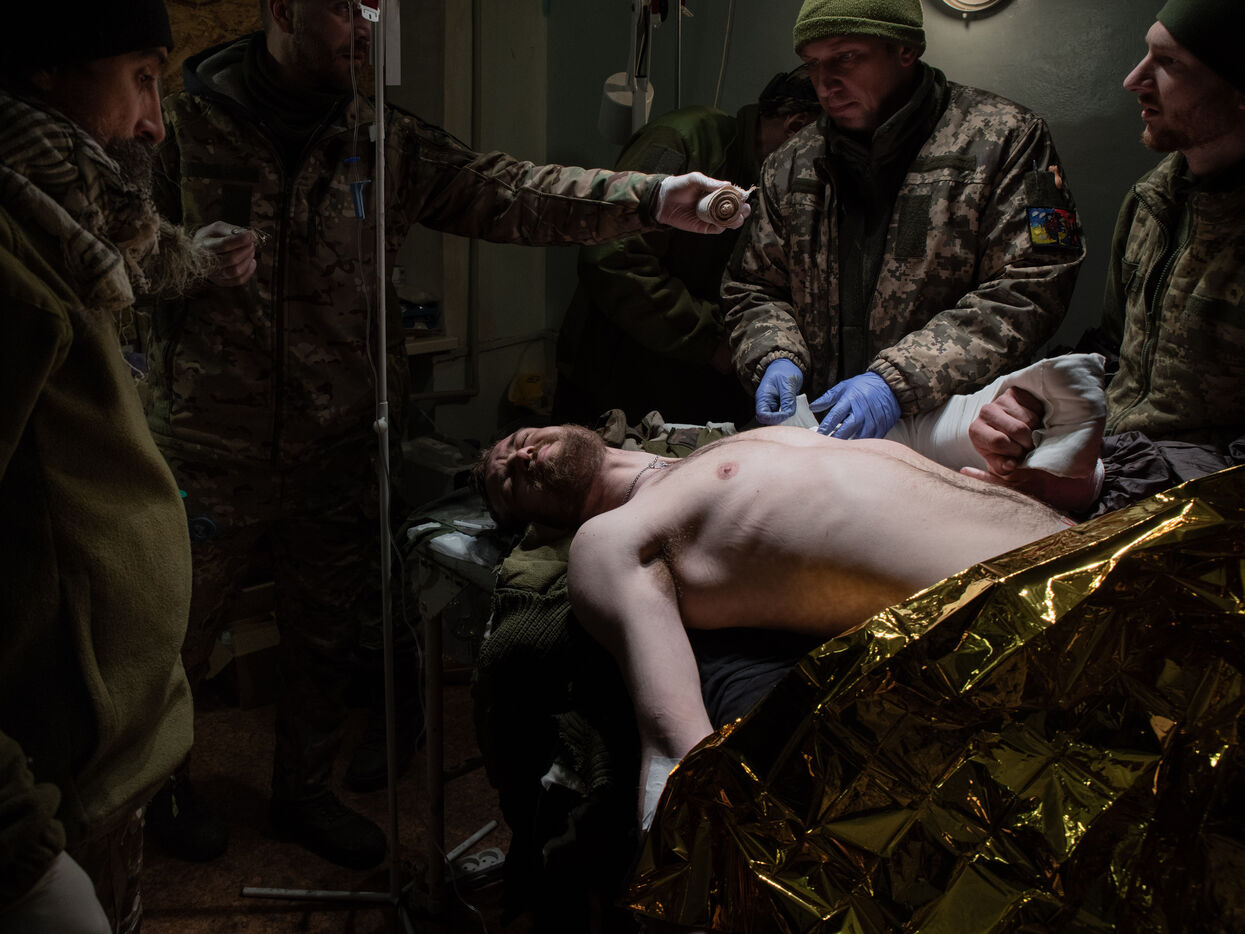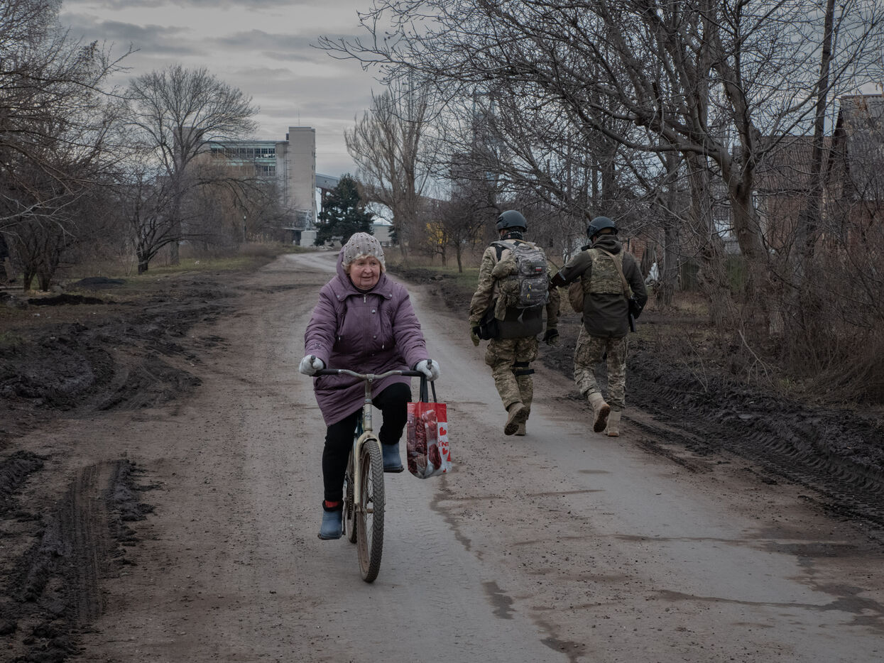 Après des mois d'assaults sur Bakhmout, dans le Donbass, l'armée russe est aujourd'hui aux portes de la ville. En quête d'une victoire symbolique, les troupes russes essayent d'encercler Bakhmout tout en progressant dans le district de Bakhmoutka à l'est de la ville. Théâtre d'affrontements particulièrement violents, le centre est la cible de bombardements quotidiens. En journée, des detonations résonnent toutes les 30 secondes dans ces rues quai désertes de la ville. Malgré les risques, Bakhmout compterait environ 7000 civils (10% de sa population normale), y compris des enfants, qui vivent sans eau courant ni électricité alors que les températures chutent jusqu'à -15 degrés.