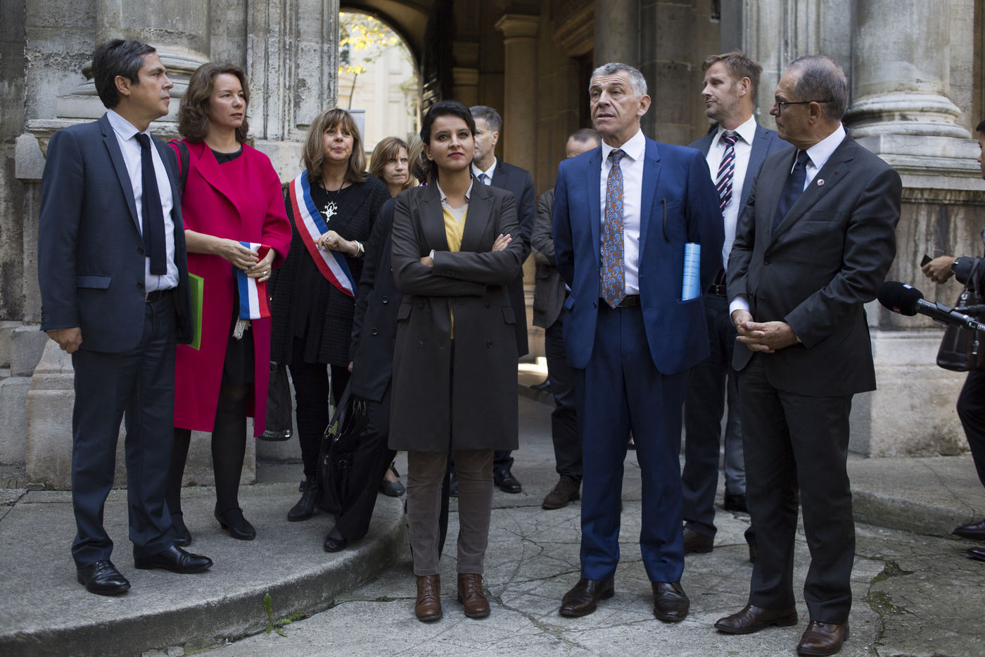 Cité scolaire Jacques Decour (Paris IX) 21 septembre 2016 - Cérémonie de remise du drapeau du Souvenir Français en présence de Najat Vallaud-Belkacem, ministre de l'éducation, Delphine Bürkli, Maire du IXème arrondissement et Pauline Véron, conseillère de Paris.