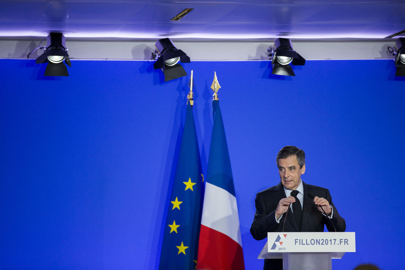 Paris, France 6 février 2017 - Conférence de presse de François Fillon, depuis son QG de campagne à Paris.