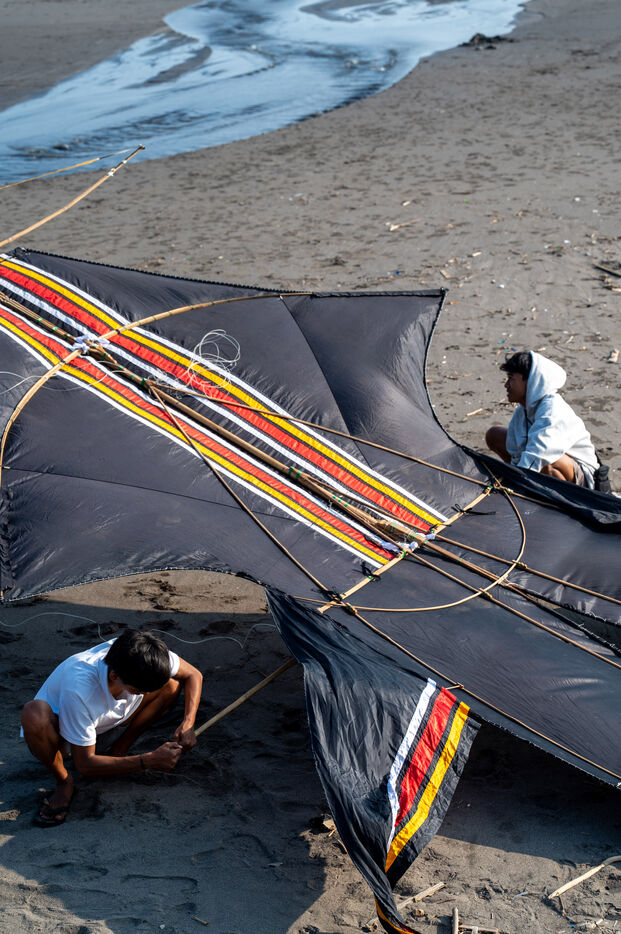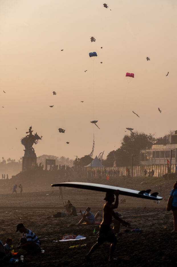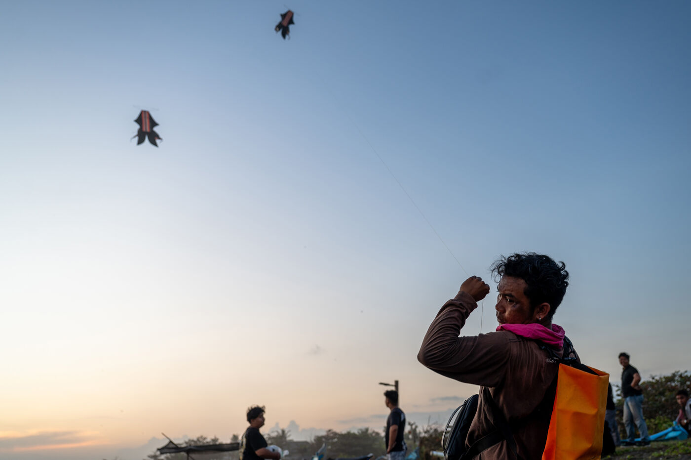 In Bali, flying kites are messengers between humans and the gods. The Balinese believe that when kite season arrives, Rare Angon comes to Earth with his flute to call the wind.